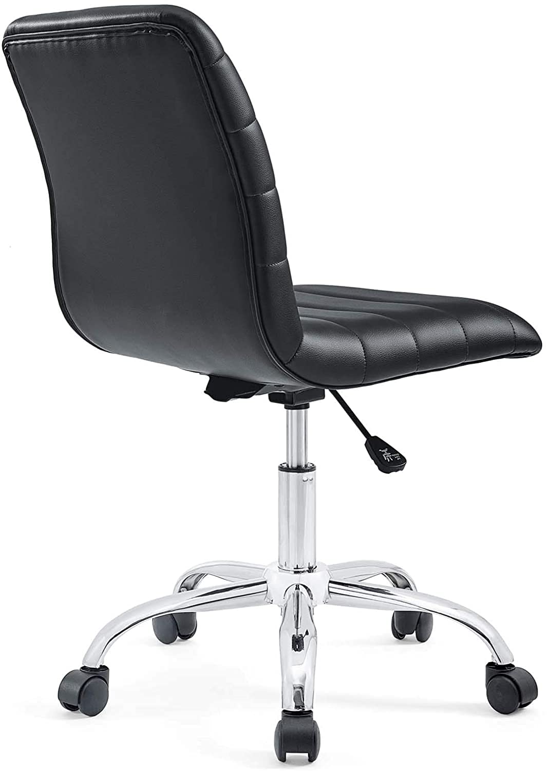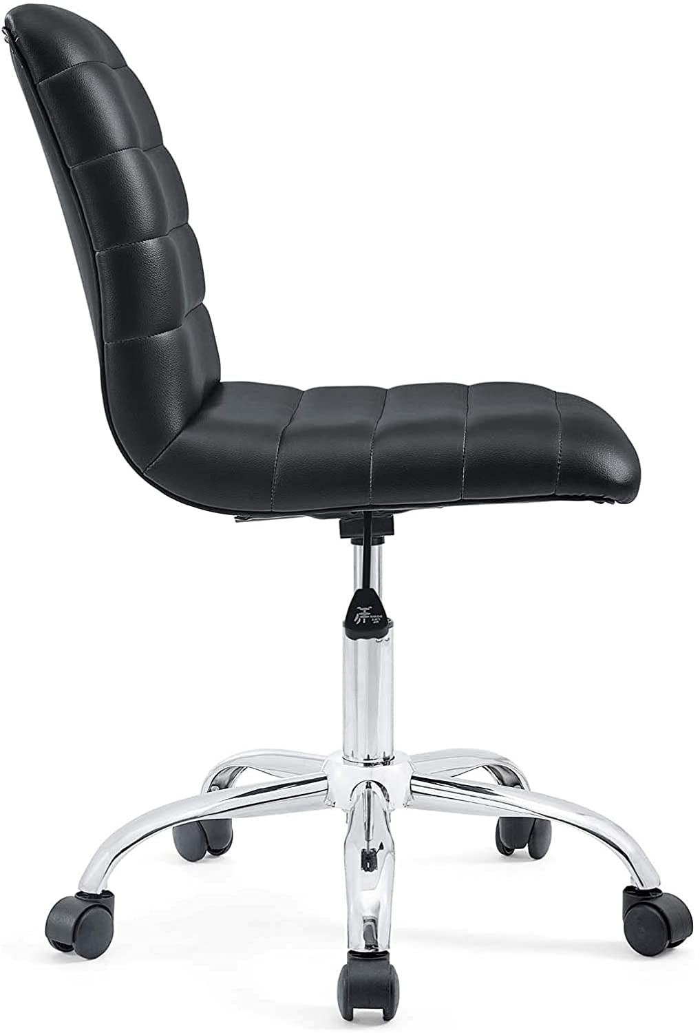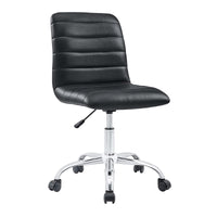 As with the ripple after-effects caused by the toss of a pebble, there’s no telling where the Ripple Armless Office Chair will take you. For those who appreciate natural resolve, without the need to know the destination point, then Ripple Computer Desk Chair is for you. Outfitted with a polished chrome steel frame and five dual-wheel casters for easy mobility over hardwood or carpeted surfaces, the padded faux leather Ripple task chair begins and ends with innovation. Ripple is the perfect ergonomic office chair for conference rooms and workstations, features fine stitching and trim throughout, and comes fully height adjustable with a 360-degree swivel.