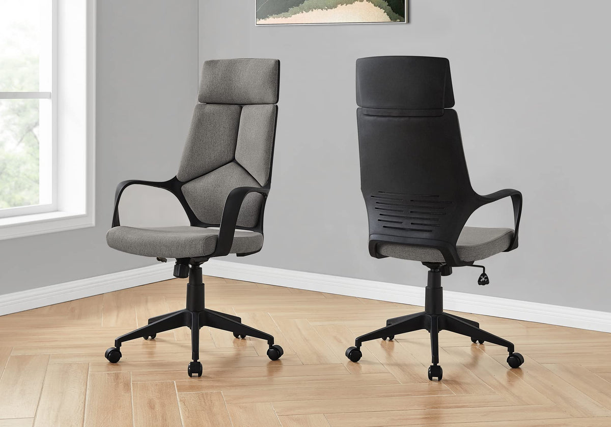 Monarch Specialties 7320, Adjustable Height, Swivel, Ergonomic, Armrests, Computer Desk, Work, Metal, Contemporary, Modern Office Chair Executive, 25' L x 24.5' W x 45.75' H, Dark Grey Fabric/Black