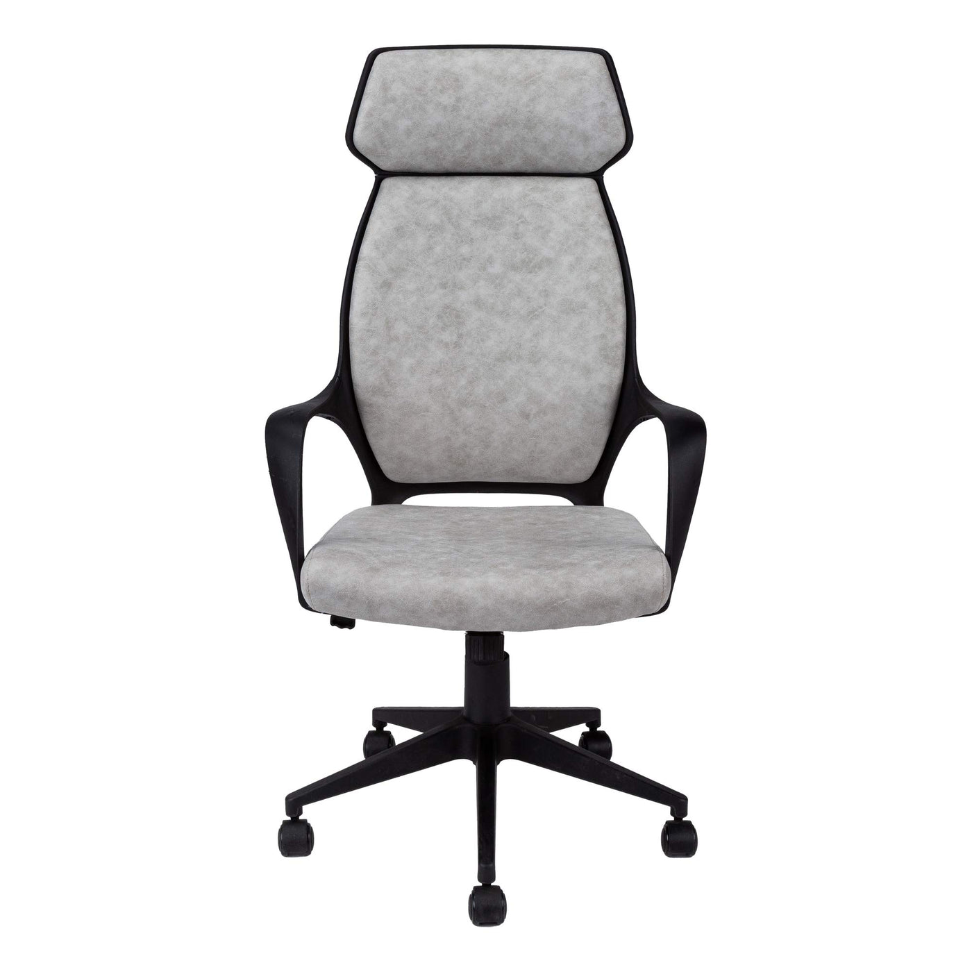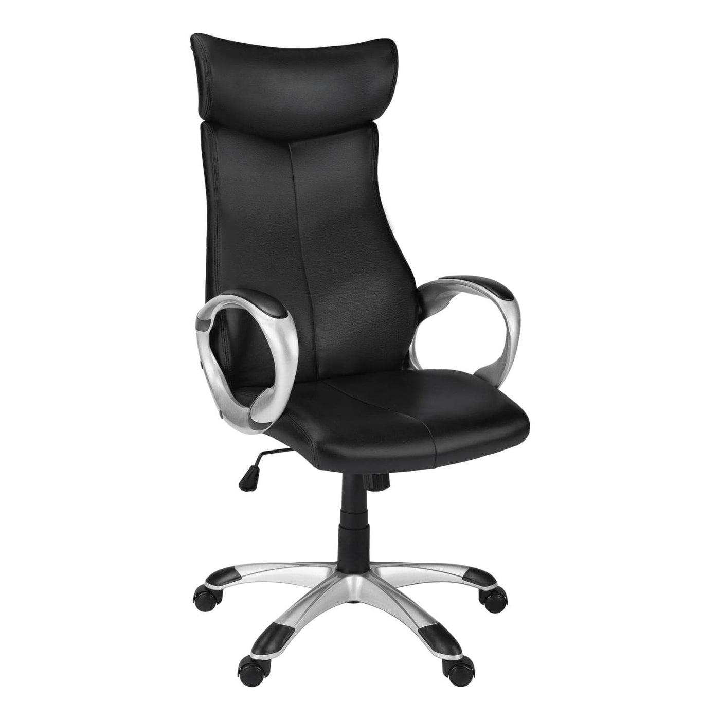 This executive office chair blends an attractively sleek, refined look with a pleasantly supportive, comfortable feel. The backrest is slender and tall with an integrated headrest and a curved, ergonomic shape that provides outstanding support. The high back, headrest, and 3.5-inch-thick seat are liberally padded for comfort and upholstered in a polyester-blend, black microfiber fabric with minimal stitching for a clean look. The thick swivel seat is wide and extra deep to offer a roomy feel. An adjustable height mechanism that also controls the tilt function lets you adjust the chair to the ideal position for you, while a black 5-star base with casters gives you the freedom to glide around while you remain seated. This task chair with fixed armrests in black conforms to BIFMA standards for office furniture. It is a great choice if you are looking for a desk chair that offers comfort and support in a streamlined, contemporary style. Additional dimensions: Overall chair height: From 46 inches to 50 inches Height from floor to seat: From 18.5 inches to 22.5 inches Seat back: 15 inches W x 27.5 inches H Seat: 20 inches D x 19 inches W Weight: 28 lbs