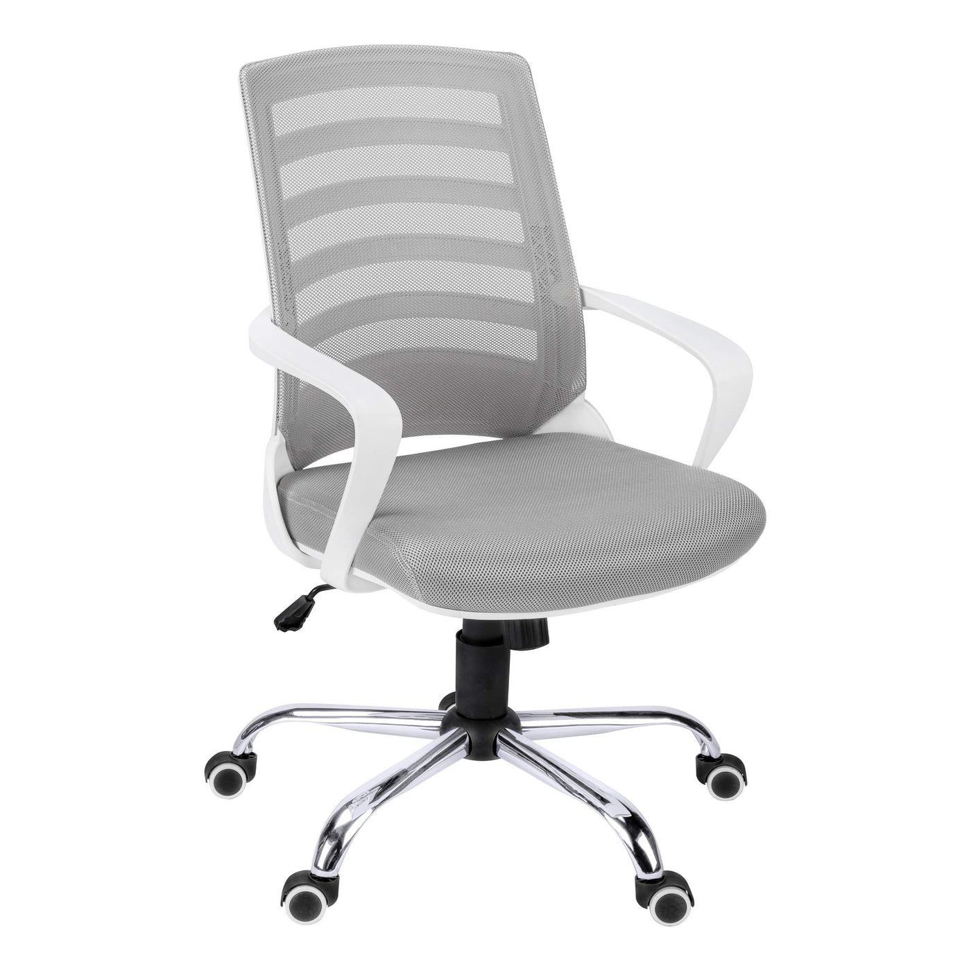 If you are looking for a stylish, mid-back chair to provide comfort and support while you work, this office chair with fixed armrests in white has your back. A ladder-back design on the exterior of the backrest is both decorative and functional. The slats add visual interest and can be used as handles when you need to move this adjustable-height desk chair, which has a 5-star chrome metal base with casters. The swivel seat also offers mobility so you can spin around without standing up. The generously padded, 3.75-inch-thick seat is deep and extra wide to offer an outstandingly comfortable and roomy feel, while the backrest has a curved, ergonomic shape that promotes good posture. Both the backrest and seat are covered in a breathable, grey mesh polyester fabric that allows air to circulate. This task chair conforms to BIFMA standards for office furniture and is a great choice for smaller home offices. Additional dimensions: Overall chair height: From 39 inches to 42.75 Height from floor to seat: From 18.75 inches to 22.5 inches Seat back: 17 inches W x 20.25 inches H Seat: 19.5 inches D x 20.25 inches W Weight: 24 lbs