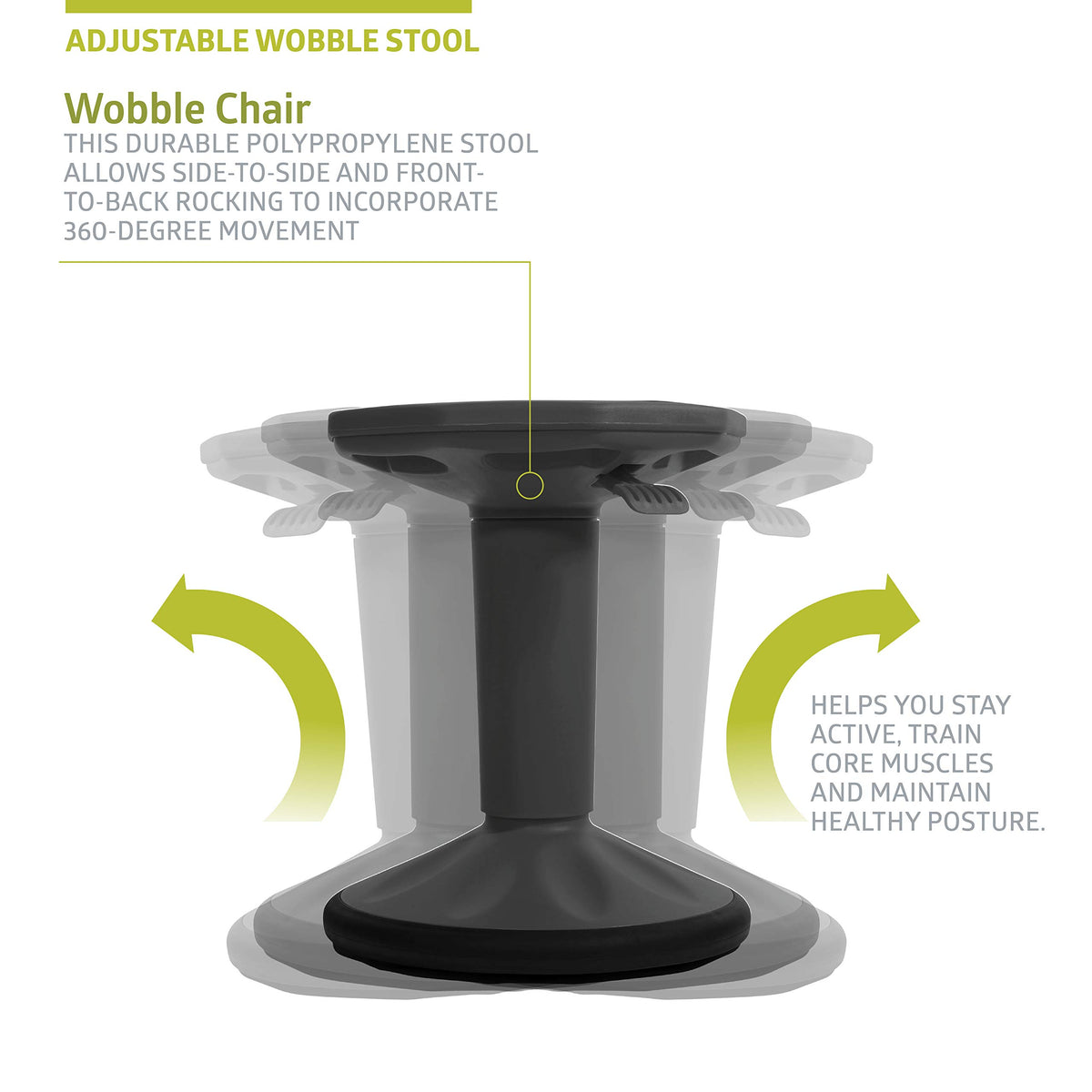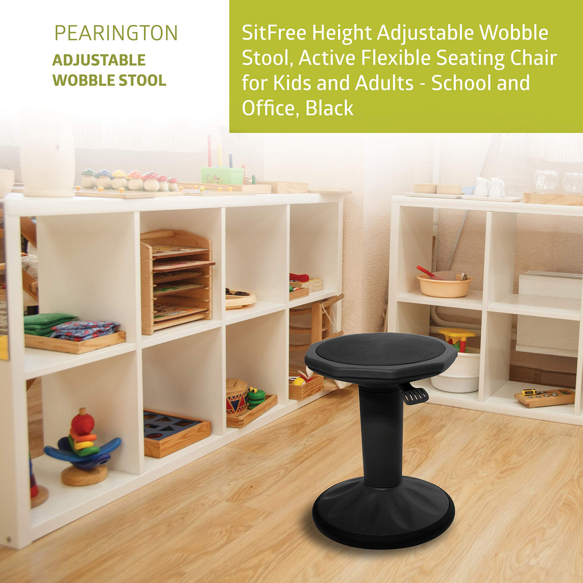 Pearington Sitfree Height Adjustable Wobble Stool, Active Flexible Seating Chair For Kids And Adults - School And Office, Black