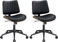 Reoney Home Armless Office Chair Set Of 2, Modern Walnut Desk Chair With Wheels, Adjustable Swivel Rolling Task Chair With Curve