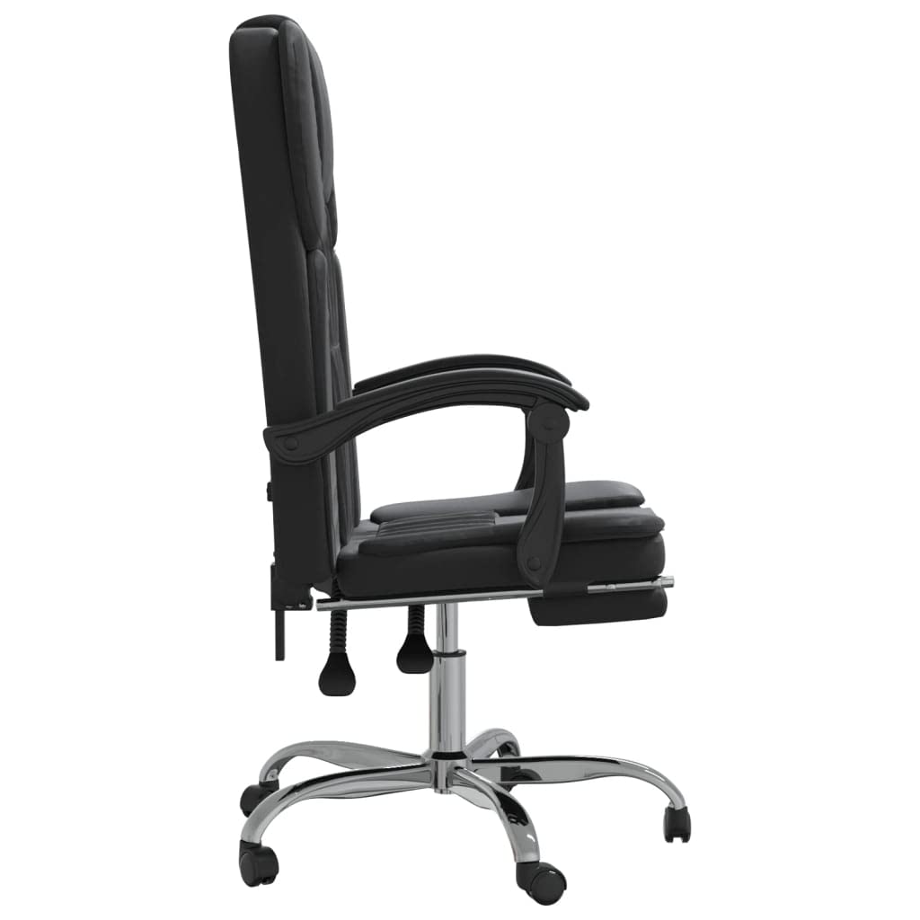 vidaXL Adjustable Reclining Office Chair - Black Faux Leather, Swivel Design, Metal Frame, Rolling Castors, Easy-Clean Upholstery