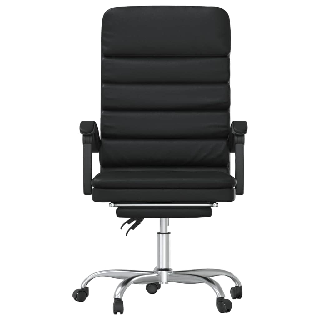 vidaXL Black Faux Leather Office Chair with Massage Function, Adjustable Reclining Backrest, & Footrest | Functional Swivel Design with Rolling Castors
