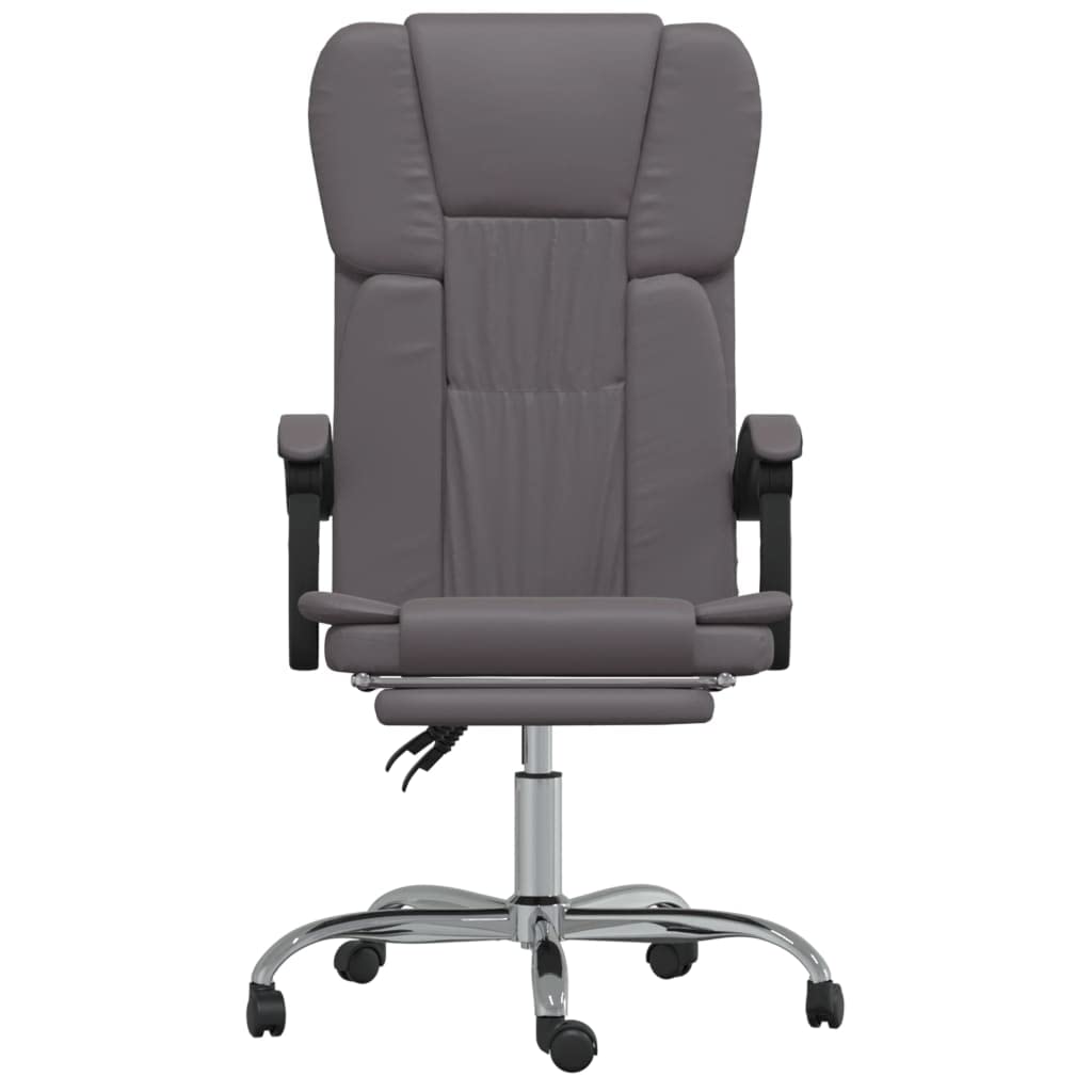 vidaXL Reclining Office Chair- Adjustable, Swivel Design with Rolling Castors, Grey Faux Leather, Metal and Plywood Frame, Modern Style for Office or Home Use