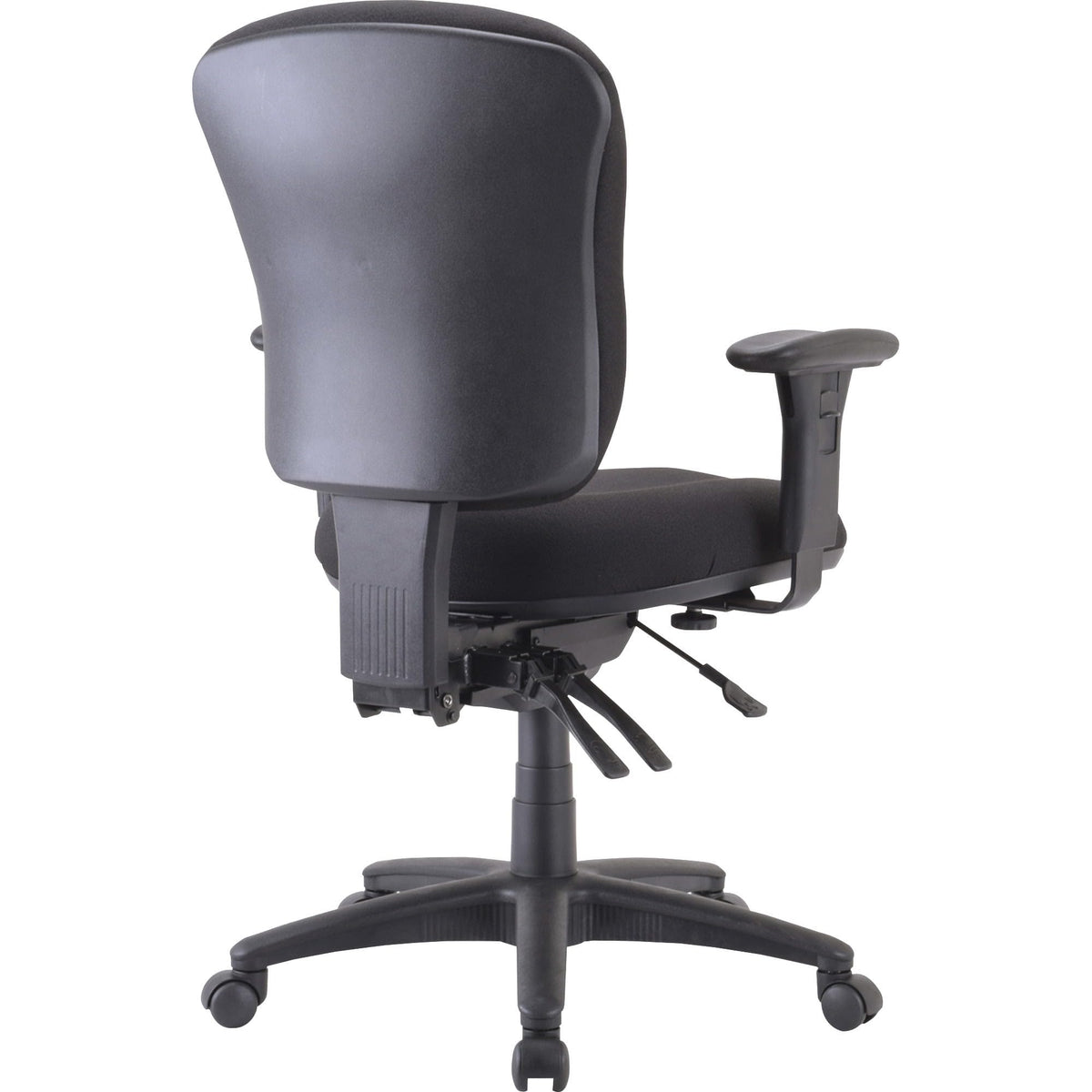 Mid-Back Task Chair Features Adjustable Arms And Molded Foam, Contoured Seat And Back That Provide Long-Lasting Comfort. Waterfall Seat Provides Under-Thigh Support. Arms Adjust In Width From 18" To 19-1/2". Functions Include Pneumatic Seat-Height Adjustment (18-1/10" To 21-7/10" High From The Floor), Back-Height Adjustment, 360-Degree Swivel, Tilt Tension, Tilt Lock And Asynchronous Control. Waterfall Seat Provides Under Thigh Support. Task Chair Offers A 275 Lb. Weight Capacity And Is Available In Black Frame Only. The Fabric Is 100 Percent Polyester.