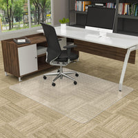 Introducing Our Large Computer Chair Mat For Carpet - The Ultimate Solution For Protecting Your Low Pile Carpeted Floors From The Wear And Tear Of Rolling Chairs. With Its Smooth Surface And Studded Underside, Our Rolling Chair Mat For Carpet Provides A Stable And Slip-Resistant Surface For Your Rolling Chair, Making It Easy To Move Around Your Workspace Without Scratches, Scuffs And Other Damages On Your Floors. In Addition, Our Plastic Chair Mat For Carpet Is Durable And Long Lasting, So You Can Enjoy Its Benefits For Years To Come. It Wont Curl Up Or Crack, Ensuring That Your Floors Are Always Protected. So, If You Want To Protect Your Low Pile Carpeted Floors While Also Enjoying A Smooth And Easy Glide Movement, Our Chair Floor Mat Is The Perfect Solution. Don'T Let Your Office Mats For Rolling Chairs Be A Source Of Frustration Anymore - Upgrade To Our Carpet Protector For Desk Chair Today! Hey, We'Ve Got More Sizes! 44' X 58', 45' X 53', 46' X 60', 46' X 72', 48' X 48', And 48' X 60'. Don'T Be Shy, Come And Get 'Em While They'Re Hot! Specifications: Material: Top-Grade Polyvinyl Chloride Dimensions: 48' X 60' X 0.08' Weight: 12.12 Lb Color: Transparent Shape: Rectangular Package Includes: 1 X Clear Chair Mat For Carpet 1 X Manual