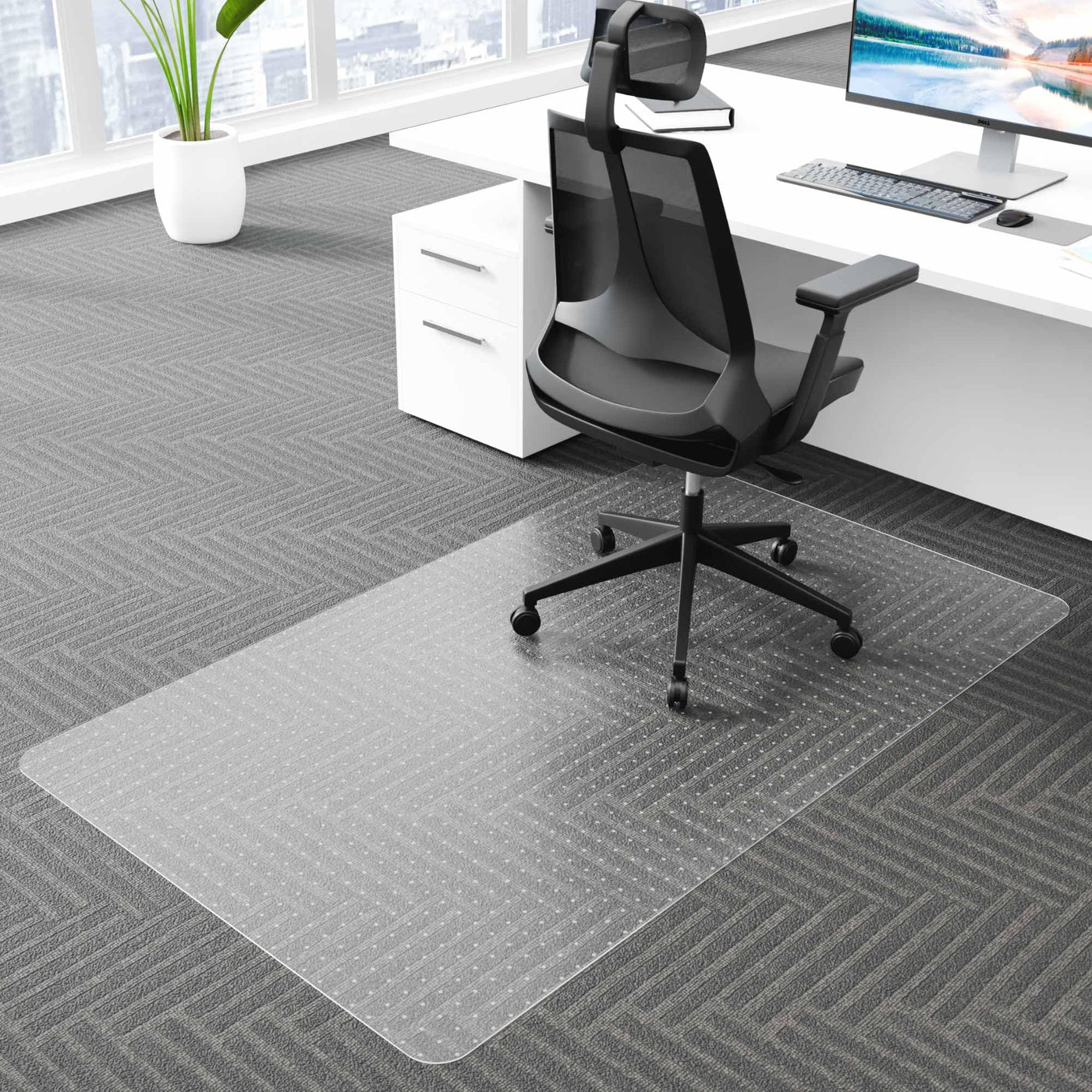 The Clear Office Floor Mats For Rolling Chairs Protects Carpets Up To 1/4 (0.25) Inch Thick And Has Cleats On The Underside To Hold The Mat In Place On Carpet And Eliminate Shifting When Chairs Move. A Smooth Top Surface Allows The Chair To Move Easily Without Causing Dents Or Divots. Our Enhanced Pvc Rolling Chair Mat For Carpet Will Not Crack, Curl, Discolor Or Smell. Ideal For Use Under Chairs At Your Computer Desk / Workstation At Home Or In The Office. Specifications: Material: Premium Polyvinyl Chloride Thickness: 0.09 (2.2Mm) Size: 36' X 60' Shape: Rectangular Weight Capacity: 8.5Lb Package Include: 1 X Office Chair Mat For Carpeted Floors This Plastic Chair Mat For Carpet Is Shipped Rolled Up, But It Is Easy To Straighten Out After You Walk On It Or Roll A Chair On It. Or Lay The Chair Mats For Carpeted Floors On A Flat Surface And Add Weight To The Rolled Up Corner For Hours. Or Put It In A Warm Room Or Near A Sunny Window For Best And Quickest Results.