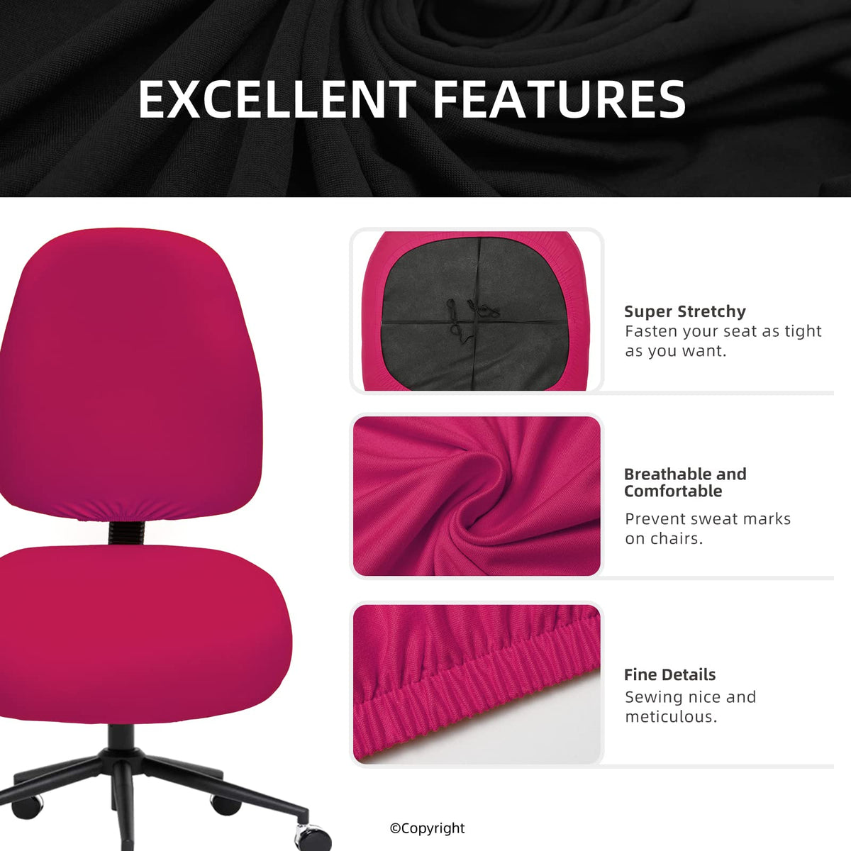 Diva En Camino Dec Stretchable Desk Office Chair Seat Covers - Universal Stretch Computer Chair Slipcover - Washable Rotating Backrest Coverings & Cushion Protectors For Dogs, Cats, Pets, Hot Pink