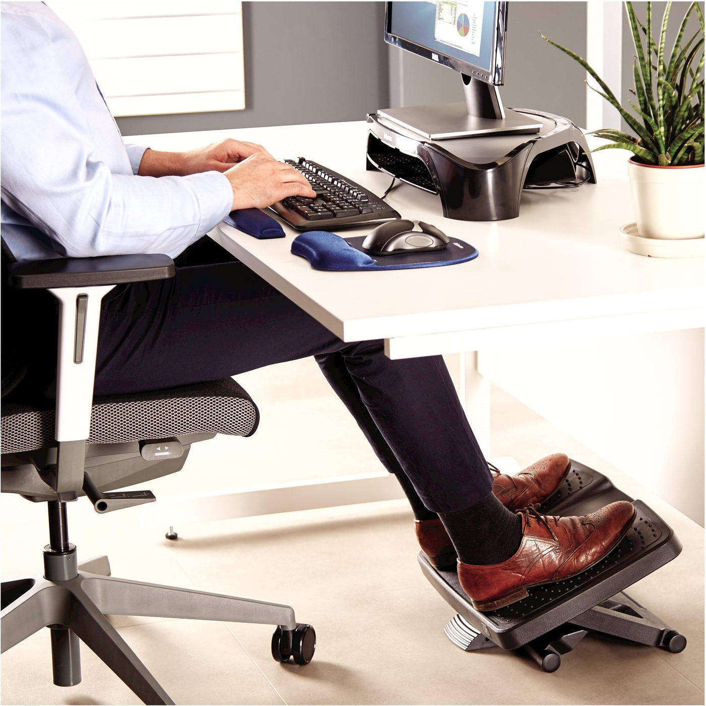 The Fellowes Ultimate Foot Support Features A Free-Floating Platform That Allows For Rocking Motion To Improve Circulation. Three Platform Height Settings (4-Inch, 5-1/4-Inch And 6-1/2-Inch) And Up To 25° Tilt. Surface Massage Bumps Help Relieve Work-Related Stress. Elevates Feet And Legs To Relieve Lower Back Pressure. 1-Year Limited Warranty.