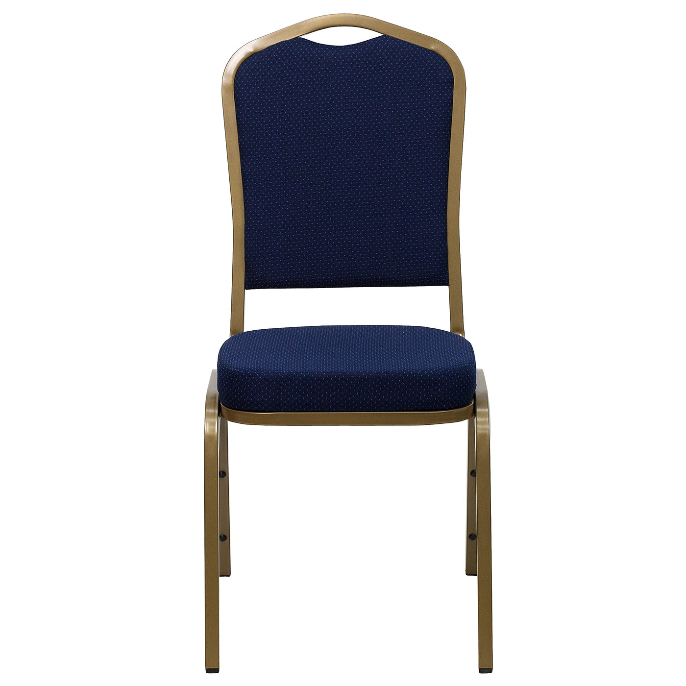 Flash Furniture 01Ag2056 Crown Back Stacking Chair, Patterned Navy Blue, 2.5 Seat, Gold Frame