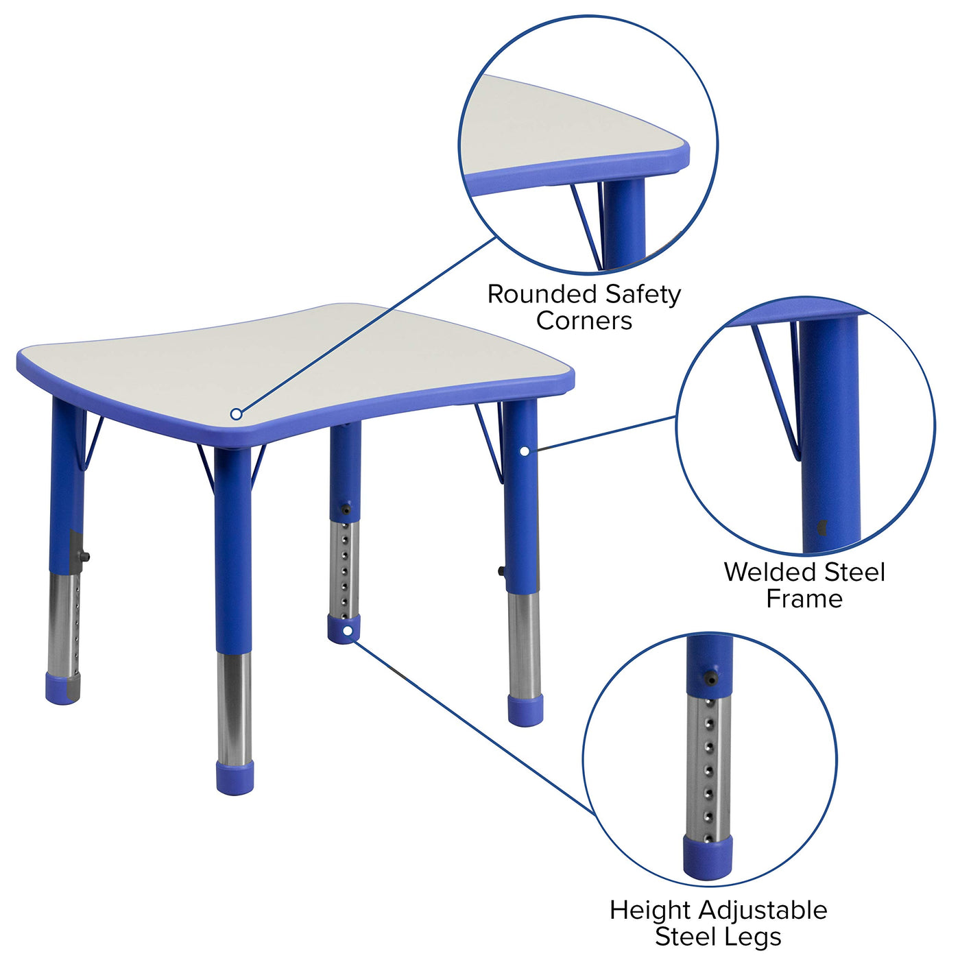Flash Furniture 21.875''W X 26.625''L Rectangular Blue Plastic Height Adjustable Activity Table With Grey Top