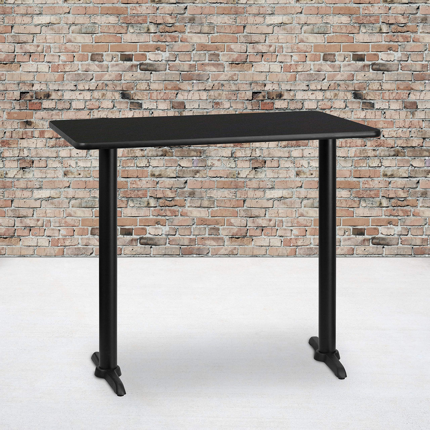 Flash Furniture 30'' X 48'' Rectangular Black Laminate Table Top With 5'' X 22'' Bar Height Table Bases