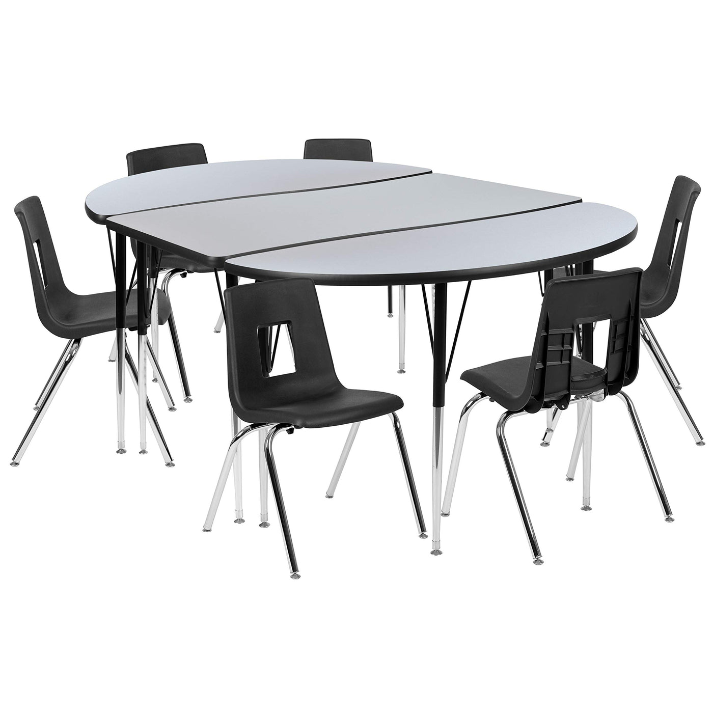 Flash Furniture 76" Oval Wave Collaborative Laminate Activity Table Set With 18" Student Stack Chairs, Grey/Black