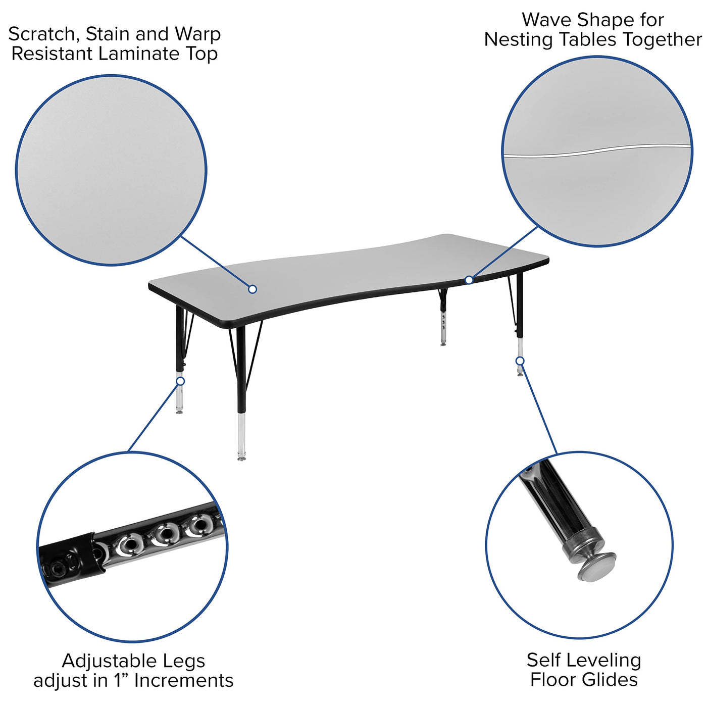 Flash Furniture 86" Oval Wave Collaborative Laminate Activity Table Set With 12" Student Stack Chairs, Grey/Black