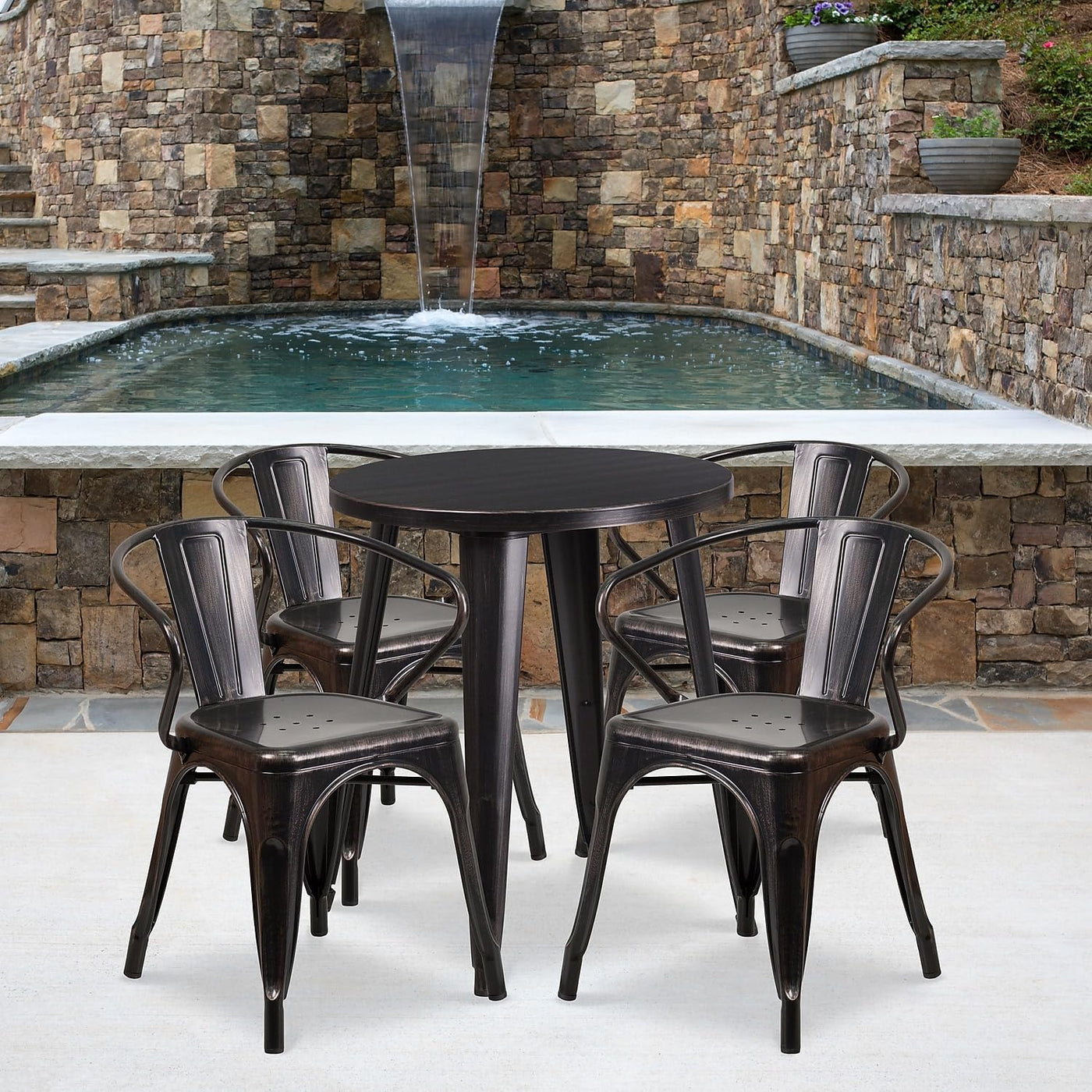 Flash Furniture Commercial Grade 24" Round Black Metal Indoor-Outdoor Table Set with 4 Arm Chairs