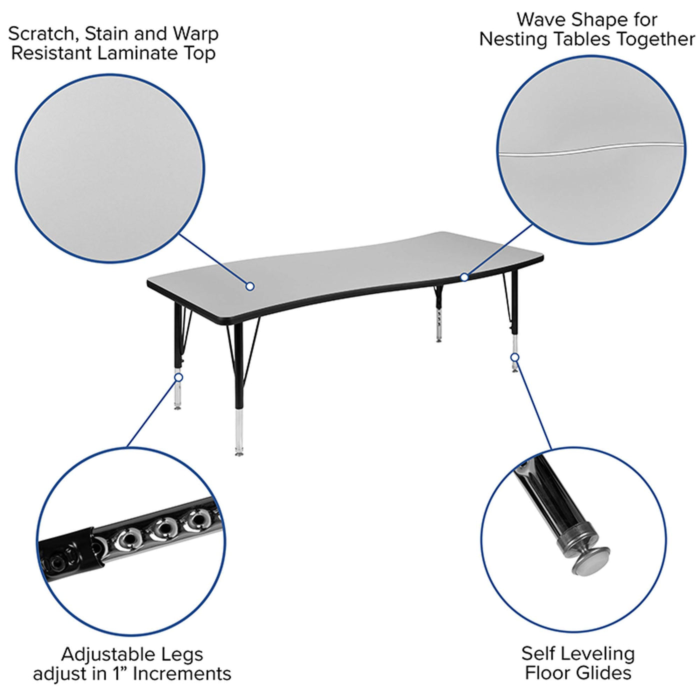 Flash Furniture Emmy 2 Piece 86" Oval Wave Flexible Grey Thermal Laminate Activity Table Set - Height Adjustable Short Legs