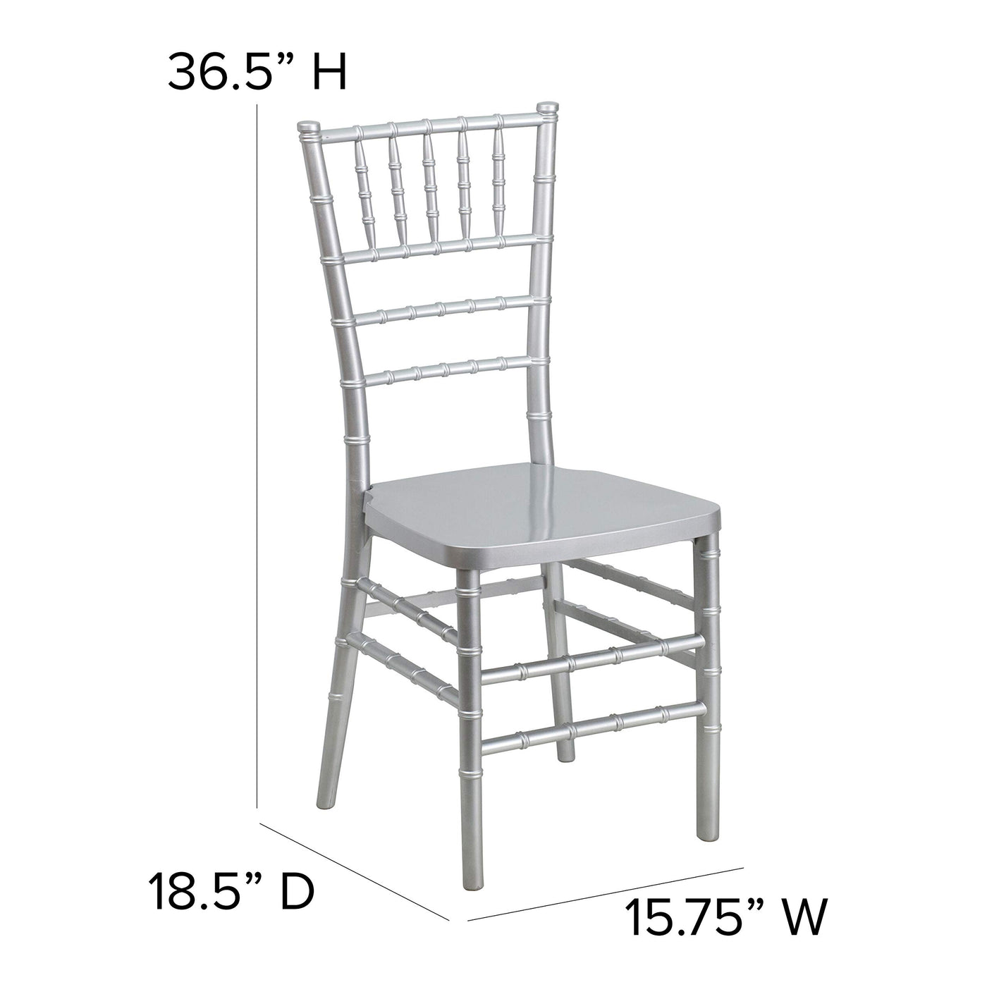 Elegance And Sophistication Are The Hallmarks Of The Chiavari Style Chair Which Has Been Used Everywhere From Tuscany To The White House And Is Ideal For Weddings, Banquets And Special Events From Casual To The Most Elaborate. Constructed Of Ultra-Strong Resin And Polycarbonate Materials, This Chair Is Very Lightweight, Yet Extremely Strong And Wobble-Free. These Beautiful Resin Chairs Ship Fully Assembled And Can Be Stacked 8 High For Storage. With Its Durable, Lightweight Construction And Elegant Styling, This Silver Chiavari Chair Will Be The Prime Seating Choice For All Of Your Special Events, Whether Indoors Or Outside.