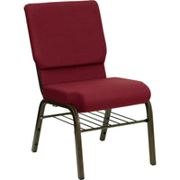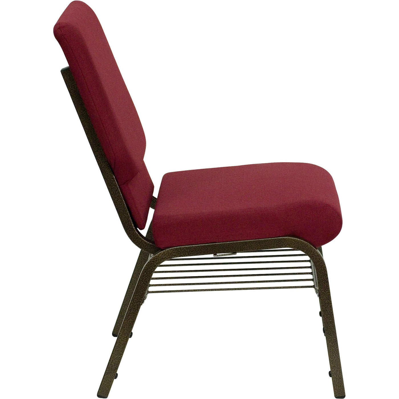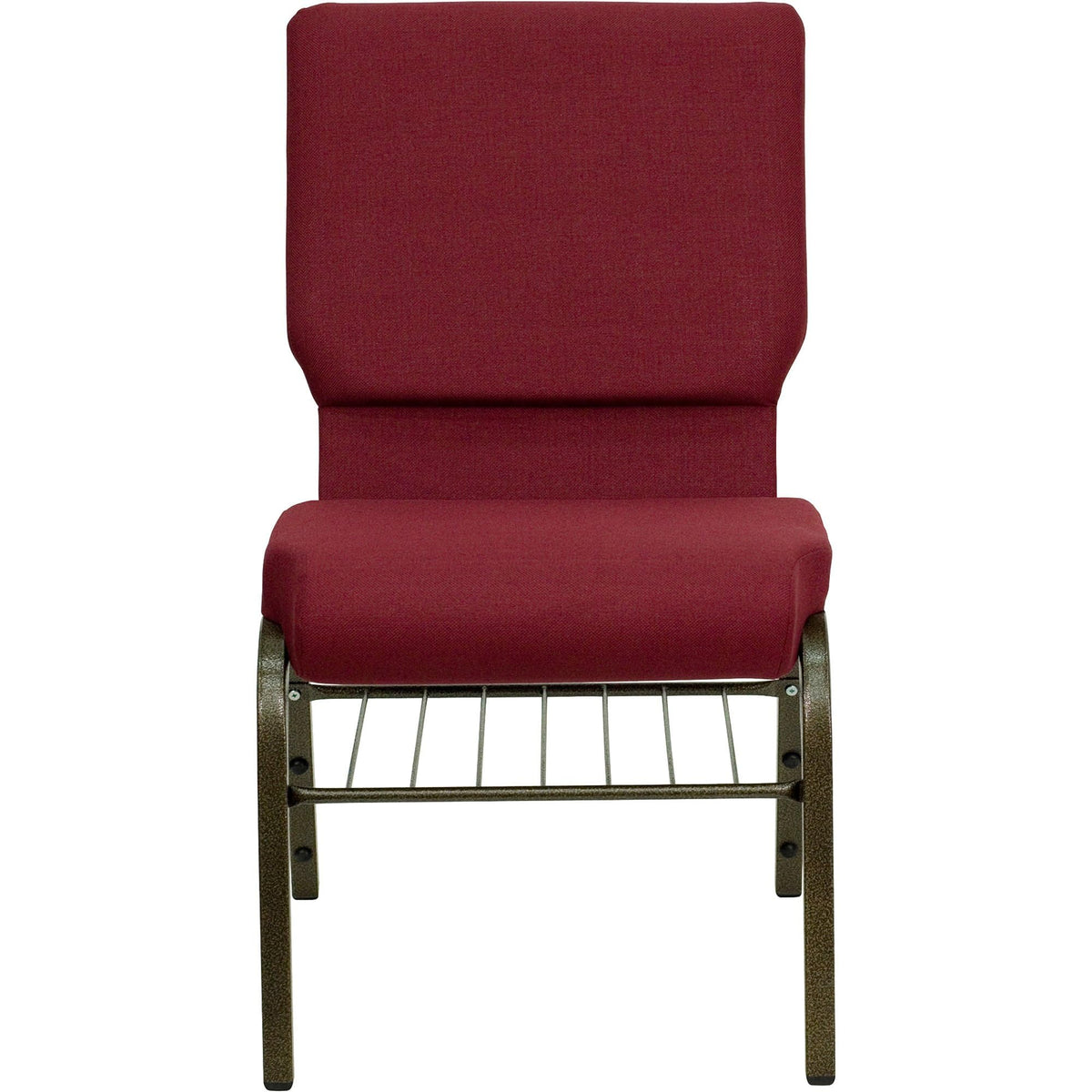Flash Furniture Hercules Series 18.5''W Church Chair In Burgundy Fabric With Book Rack - Gold Vein Frame