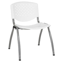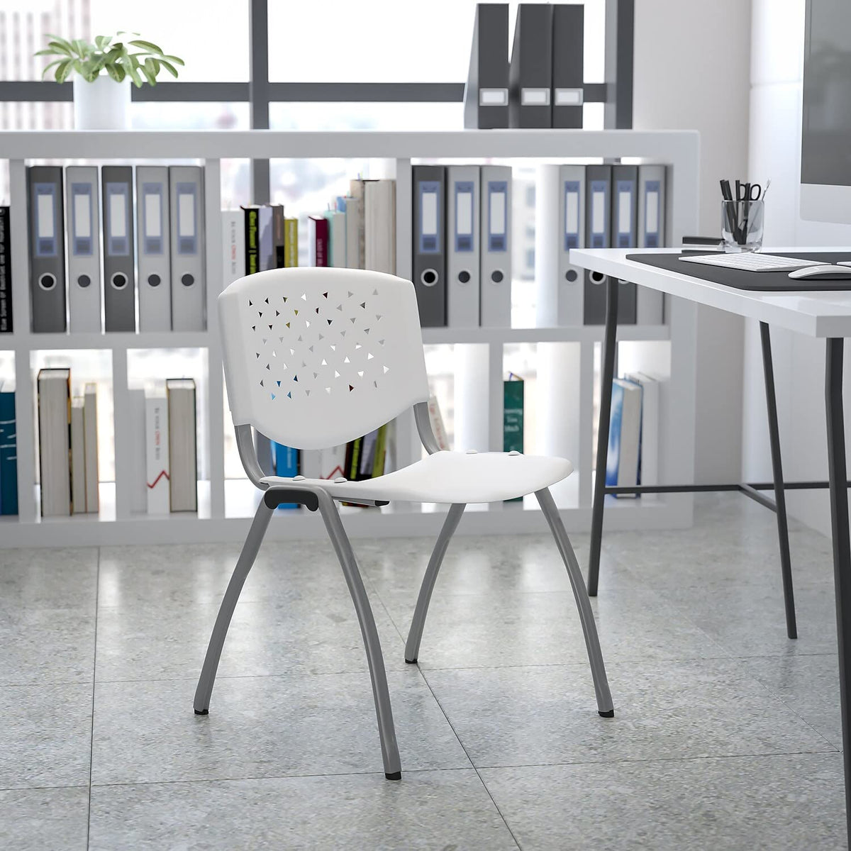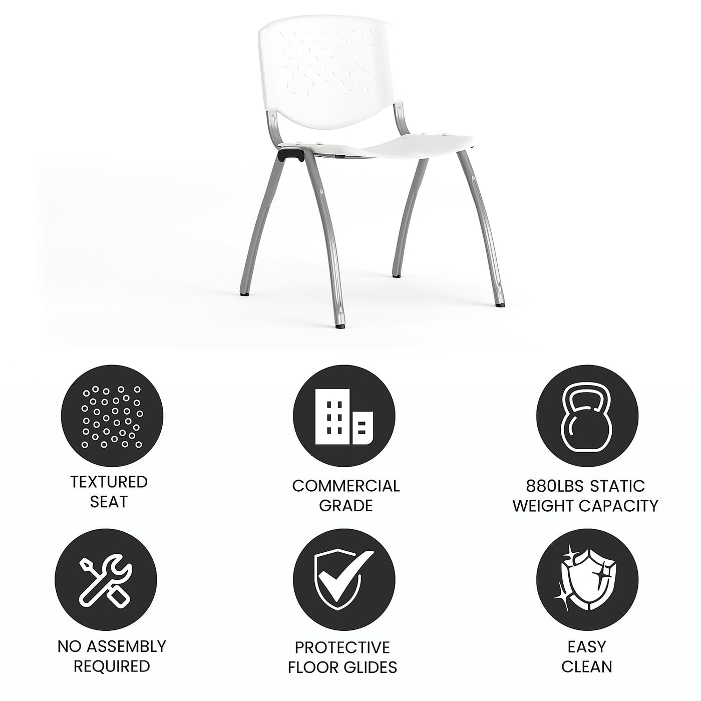When You Need To Seat Guests In Your Hair Salon, Barbershop, Tire Or Body Shop This Plastic Stack Chair Will Bring Comfort To Guests Waiting For Service. Guests Will Love The Wider Seat Design That Is Curved For Comfort. The Innovative Ergonomic Design Provides Angled Seating For Your Visitor'S To Comfortably Recline While Reading A Book Or Scrolling Through Their Phone.Setup Training Rooms Using Stackable Plastic Chairs To Be Placed Around Training Tables. When You Arrange For Guest Speakers In Your Classroom Or Community Center, Place Several Plastic Chairs In A Row. The Stacking Chair Features A Perforated Back, Textured Seat To Sit Safely And A Titanium Gray Finished Powder Coated Metal Frame That Holds Up To 880 Pounds.Whether You Need To Furnish A Small Or Large Business There'S No Job That This Heavy-Duty Plastic Guest Chair Won'T Be Able To Handle. These White Plastic Stack Chairs Stack Up To 25 Chairs High And Can Be Transported Across The Facility On Our Steel Stack Chair And Church Chair Dolly.