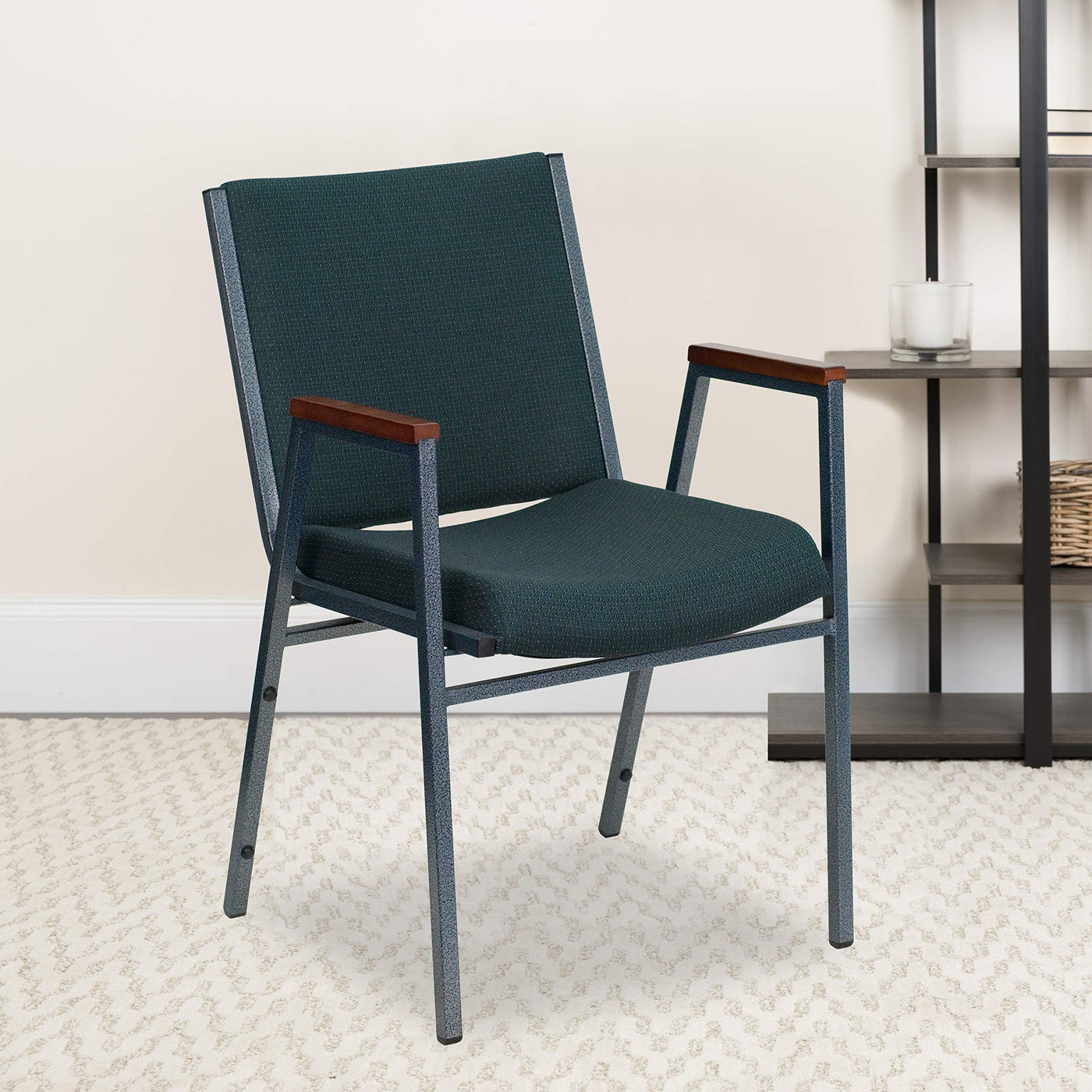 Flash Furniture Hercules Series Heavy Duty Green Patterned Fabric Stack Chair With Arms And Ganging Bracket