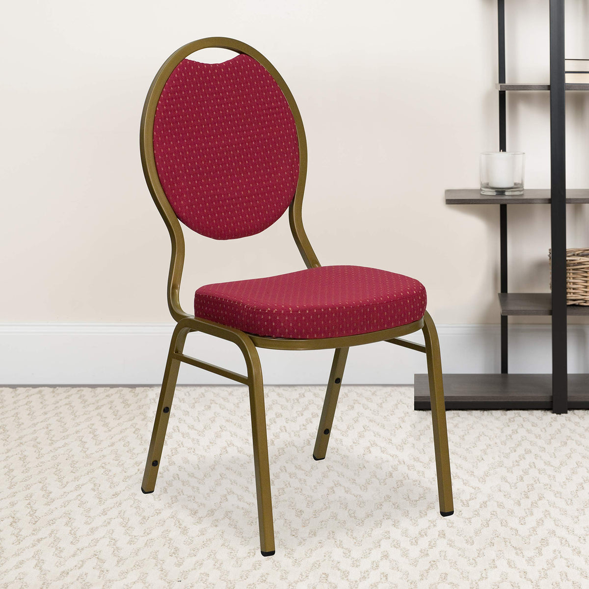 Flash Furniture Hercules Series Teardrop Back Stacking Banquet Chair In Burgundy Patterned Fabric - Gold Frame