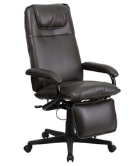 Go From Sitting To A Reclined And Relaxed Position In Seconds With This Reclining High Back Executive Office Chair! Now You Can Have The Best Of Both Worlds With This Dual Designed Office Chair That Offers You The Comfort Of A Recliner In An Office Chair. This Office Chair Offers You The Standard Pneumatic Seat Height Adjustment With The Added Bonus Of A Reclining Back And Easy Touch Adjustable Footrest. [Bt-70172-Bn-Gg] High Back Recliner Swivel Chair. Made Of Eco-Friendly Materials. Padded Headrest. Reclining Back Paddle Control. Easy Touch Height Adjustable Footrest Lever. Footrest Adjusts In Increments. Depth Adjustable Footrest. Pneumatic Seat Height Adjustment. Black Metal Padded Arms. Heavy Duty Nylon Base. Dual Wheel Casters. Brown Leathersoft Upholstery. Leathersoft Is Leather And Polyurethane For Added Softness And Durability. Ca117 Fire Retardant Foam.