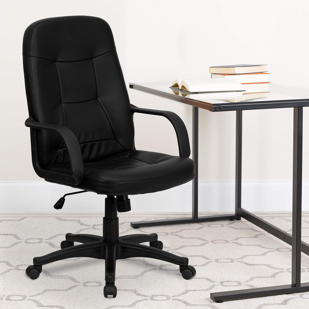 Flash Furniture Holly High Back Black Glove Vinyl Executive Swivel Office Chair with Arms