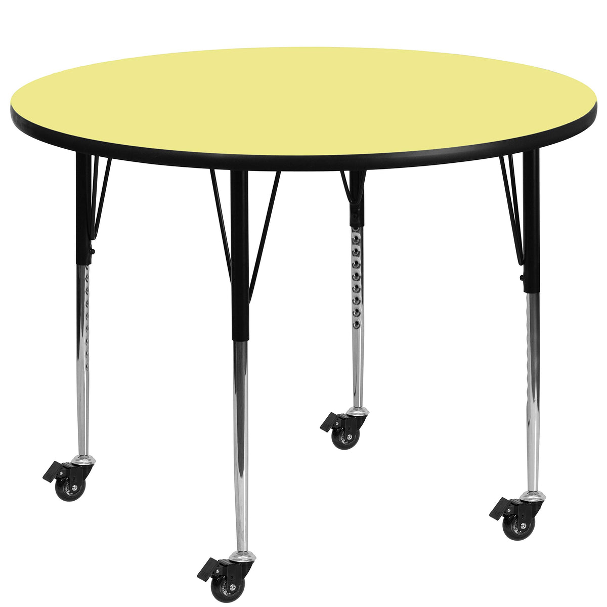 Flash Furniture Mobile 48'' Round Yellow Thermal Laminate Activity Table - Standard Height Adjustable Legs