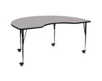 Flash Furniture Mobile Kidney Hp Laminate Activity Table With Standard Height Adjustable Legs, 48"W X 72"L, Gray
