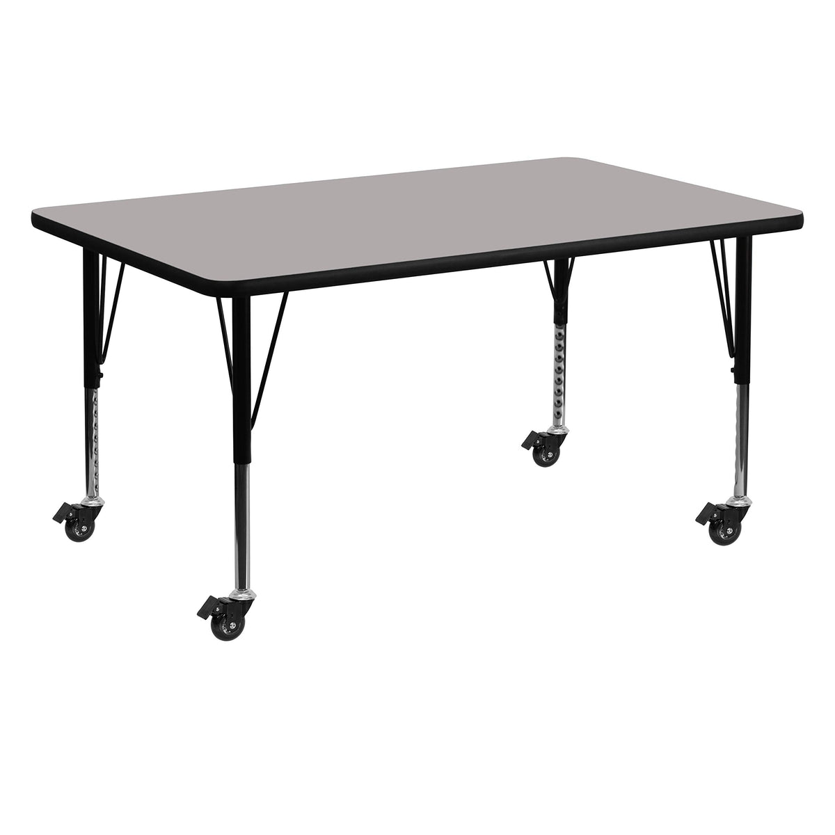 Flash Furniture Wren Mobile 30''W X 60''L Rectangular Grey Hp Laminate Activity Table - Height Adjustable Short Legs