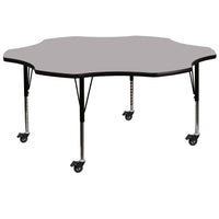 Flash Furniture Wren Mobile 60'' Flower Grey Thermal Laminate Activity Table - Height Adjustable Short Legs