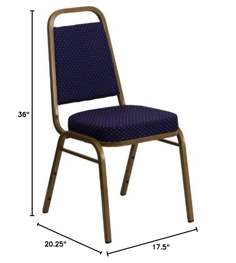 Description500 Lb. Capacity Hercules Chair Multi-Purpose Stacking Banquet Chair Stacks 13 Chairs High Trapezoidal Back Design Seamless Back Panel Navy Patterned Fabric Upholstery 2.5'' Thick Seat Cushion 16 Gauge Steel Frame Double Support Bracing Plastic Bumper Guards Gold Powder Coated Frame Finish Non-Marring Plastic Floor Glides Ca117 Fire Retardant Foam Ships Fully Assembled Limited Lifetime Warranty On Frame Free Shipping To Lower 48 States!