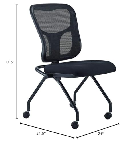 Designed with mesh back and well padded seat, upholstered in soft black fabric, our guest chair keeps your guests relaxed at your office as they wait or discuss with you. It is built to last and rests on four solid legs with caster wheels so you can easily roll it in place. Meanwhile, its black finish makes for a bold, elegant and professional look in your office. Dimensions: 24" x 24.5" x 37.5".