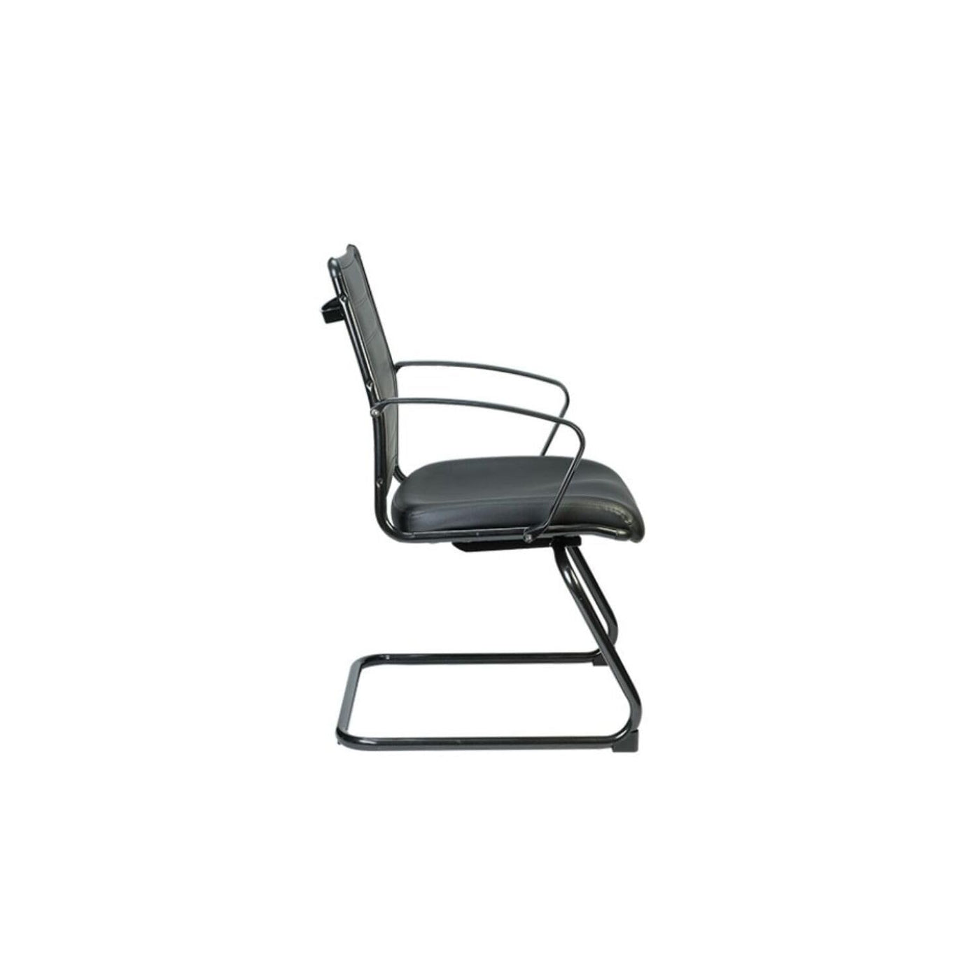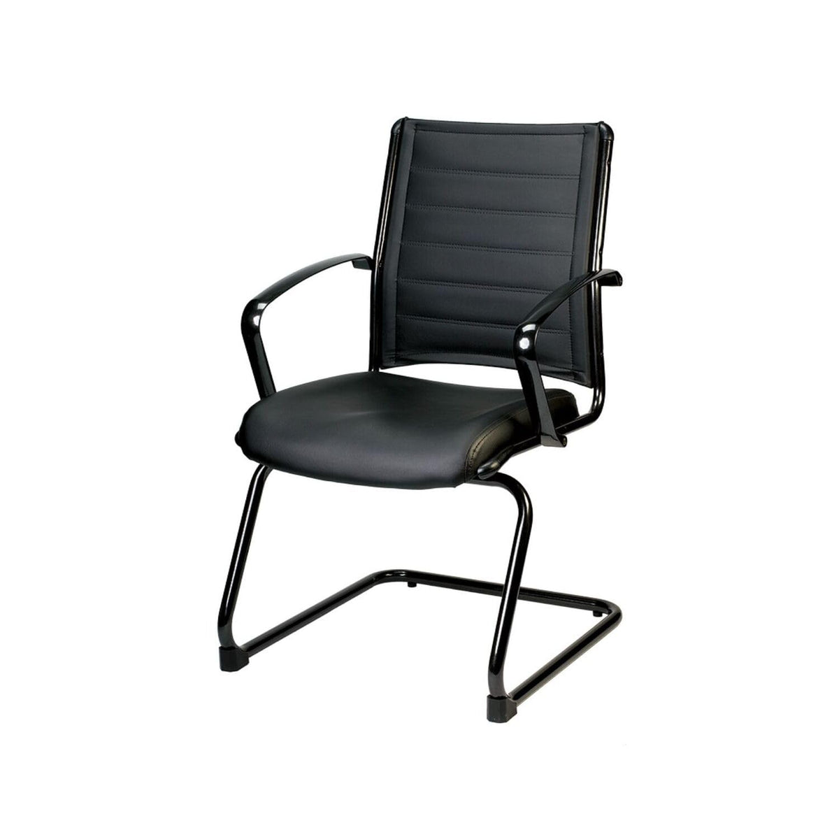 Designed with back and well padded seat, upholstered in black leather, our guest chair keeps your guests relaxed at your office as they wait or discuss with you. It is built to last on a solid chrome frame and rests on a delectable base. Meanwhile, its black finish makes for a bold, elegant and professional look in your office. Dimensions: 22" x 25.5" x 35.4".