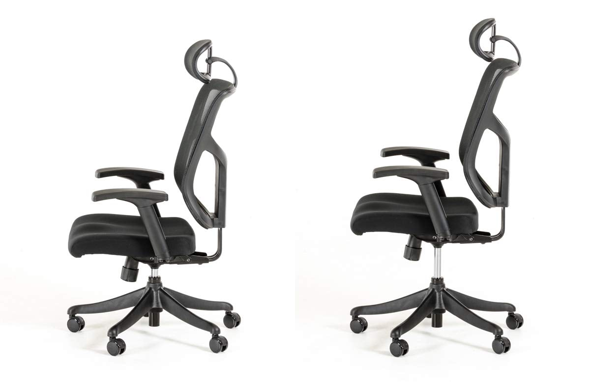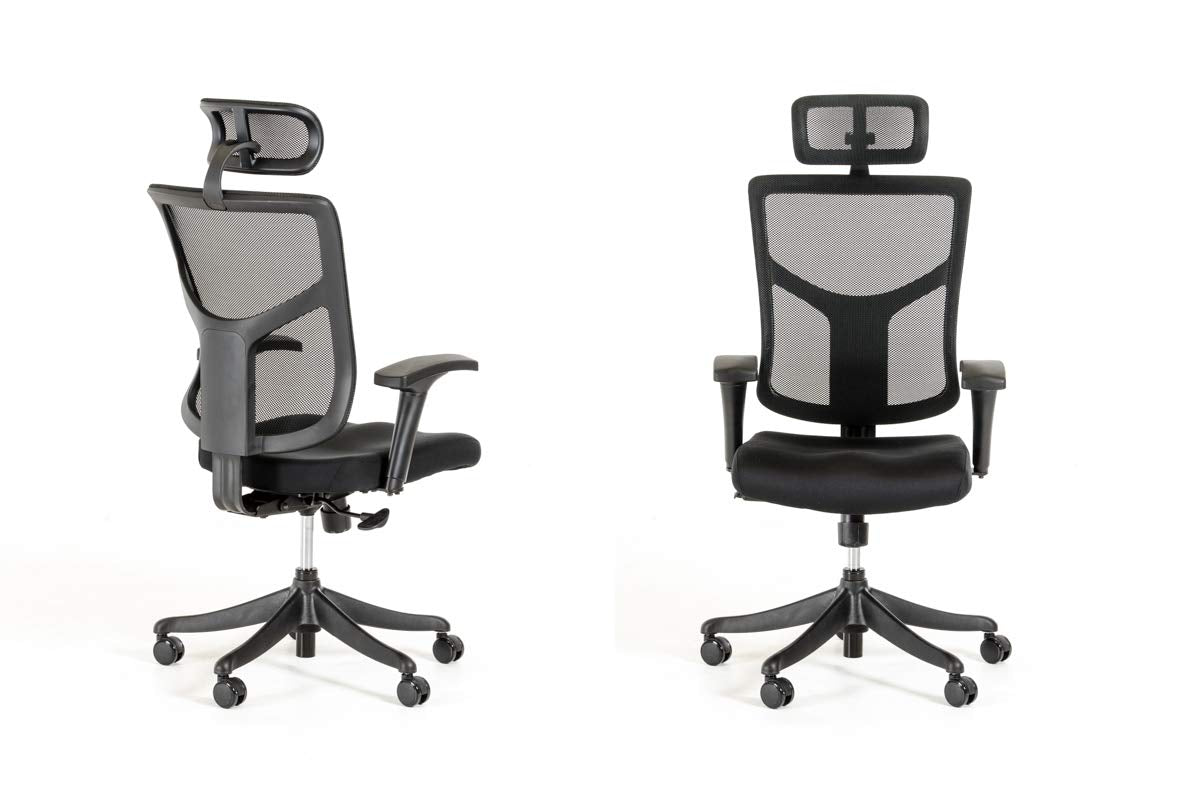 Ergonomic Black Polyester Mesh Back Cushioned Seat Black Plastic Frame 5-Point Rolling Black Nylon Base Swivel Base Pu Castors Ergonomic Design Gas Lift Height Adjustable Back Rest - This Back Rest Can Be Locked In 4 Different Positions 8 Angle Adjustment Head Rest - This Head Rest Can Be Adjusted Forward & Upward Adjustable Armrests - Armrest Can Be Adjusted In 9 Different Positions Adjustable Arm Pads - Arm Pads Can Be Rotated Outwards Or Inwards Multi-Functional Mechanism - Mechanism Has Seat Height Adjustment, Back Rest Tilt Angle Adjustment, Back Rest Tilt Tension Adjustment, And Seat Depth Adjustment Fade & Odor Resistant 5 Year Warranty Assembly Required Meets Or Exceeds All Bifma Standards For Safety & Performance - Aluminium, Plastic, Mesh,***W26' x D26' x H52' Seat Height: 18-21'