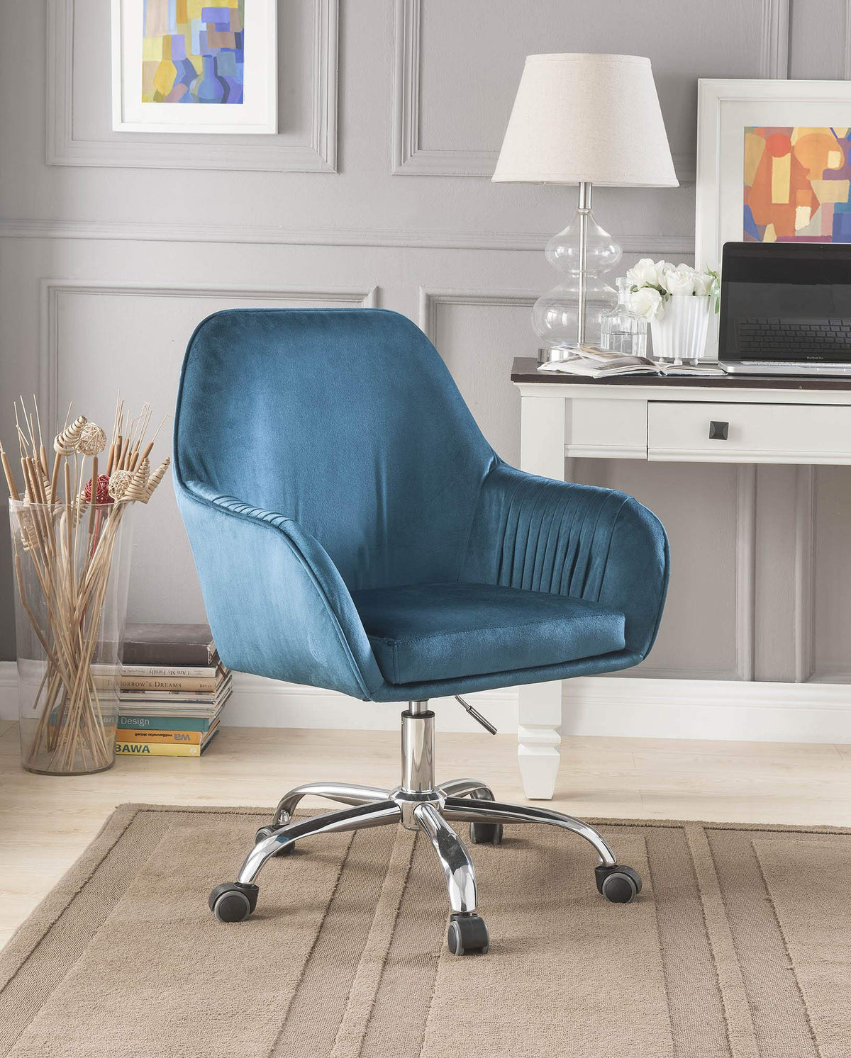 A Perfect Combination Of Structure And Softness, Our Office Chair Will Adds Shimmering Sense To Any Setting. Supported With The Chrome Base That Features Gas Lift Design And Caster Wheels, This Chair Is Practical And Trendy. High-Density Foam Upholstered In Beautiful Velvet, Ultimate Comfort Is Guaranteed. With Two Color Options Available, This Piece Will Bring Versatility And Understated Appeal To Your Home.**