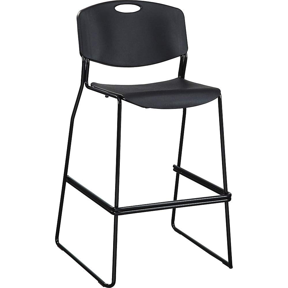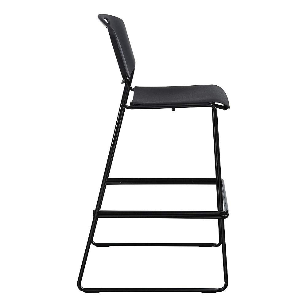 Heavy-duty chairs with foot bar offer a bistro-height perfect for cafes and standing-height tables and work surfaces. The seat and back are made of an injection-molded plastic for easy-to-clean seating. Waterfall seat front helps promote good blood circulation. Small, convenient slot in the top of the back makes it easy to place and relocate chairs. Frame is made of sturdy, thick steel with a Black finish. Weight capacity is 250 lb.