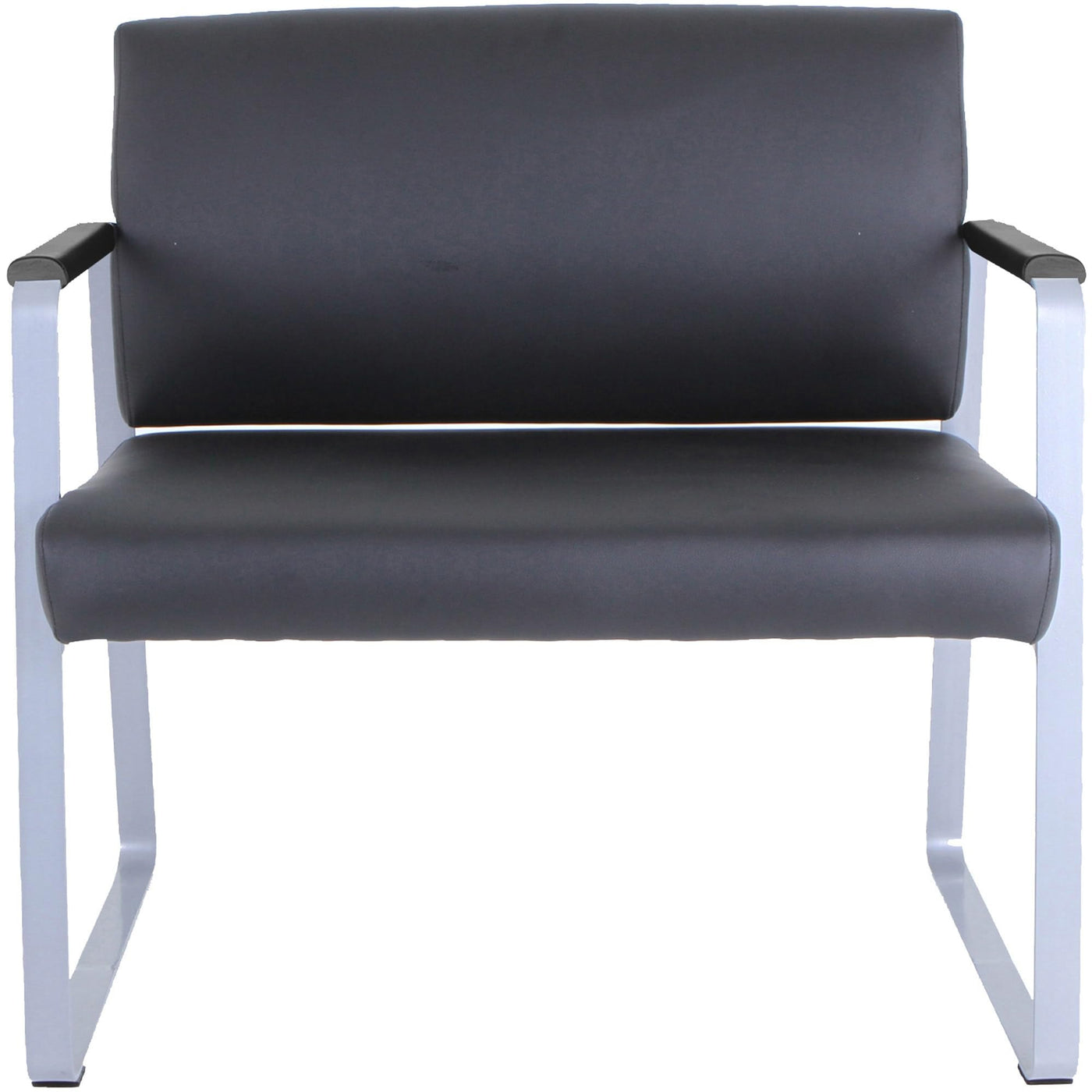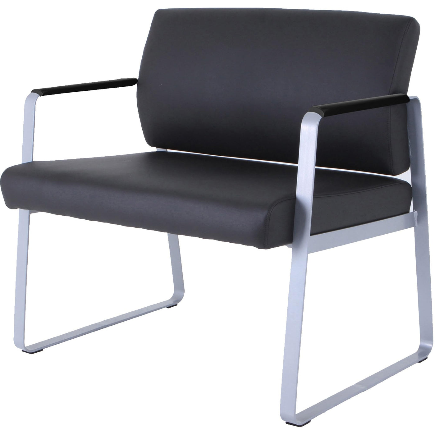 This large guest chair is specially designed for healthcare facilities. Thick seat and back cushions are upholstered in healthcare-grade, vinyl so the product lasts longer and it's easier to clean. Arms are padded with matching polypropylene pads for comfort. Bariatric Healthcare Guest Chair also features a steel frame powder-coated in silver and equipped with felt pads on the sled base to protect your floor. Weight capacity is 500 lb