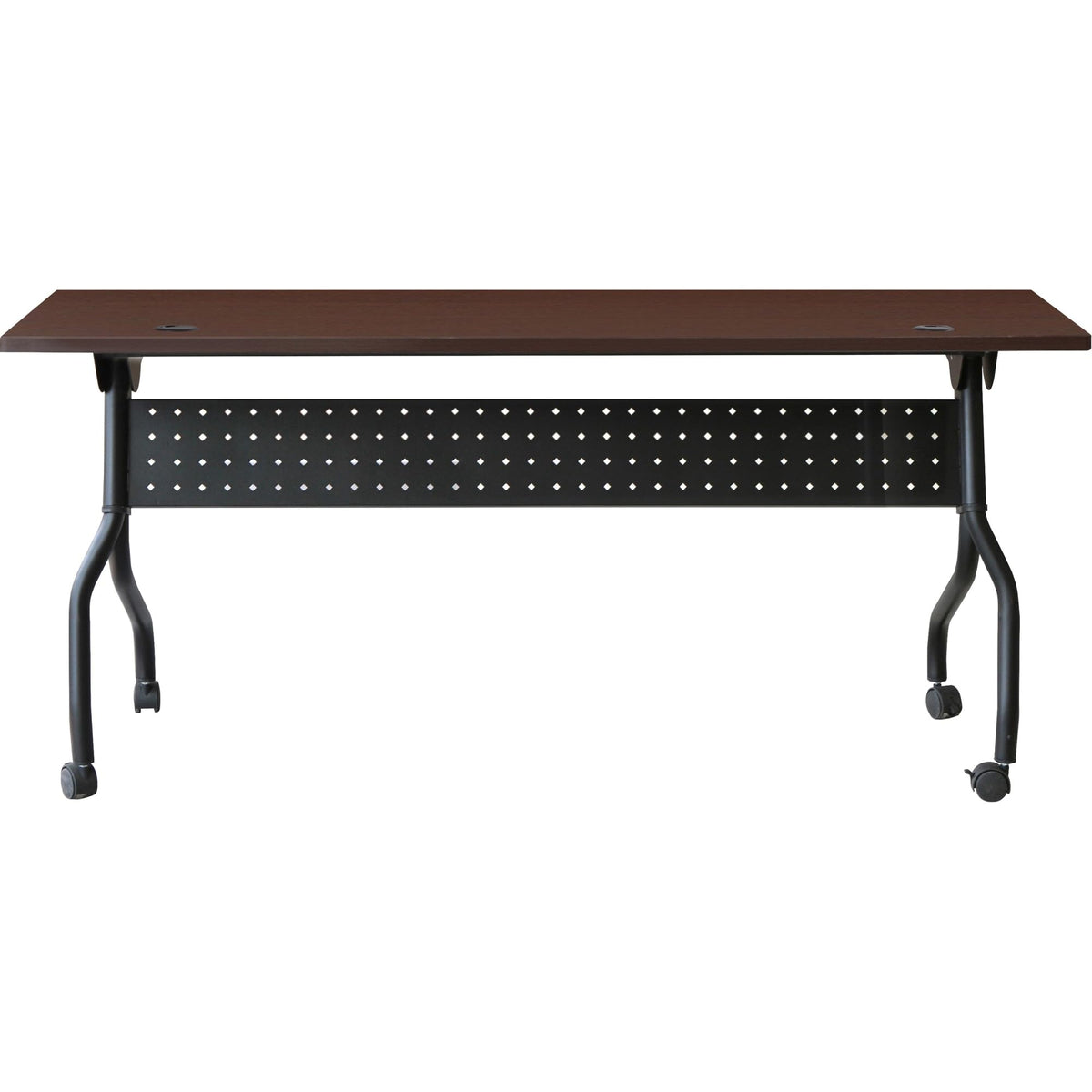 Versatile Training Table Offers Flexible Configurations And Convenient Storage. Use Individually Or Secure Together Into Rows With A Reliable Metal Connector (Sold Separately). Top Flips Up For Easy Storage Without Having To Remove The Connector. Top Features A Melamine Surface With A 3Mm Pvc Straight Edge. Two Grommets Allow Easy Cord Management. Four-Leg, All-Metal Base Features A One-Way Fold And Modesty Panel. Table Rolls Easily On Four Nylon Casters With Brakes.