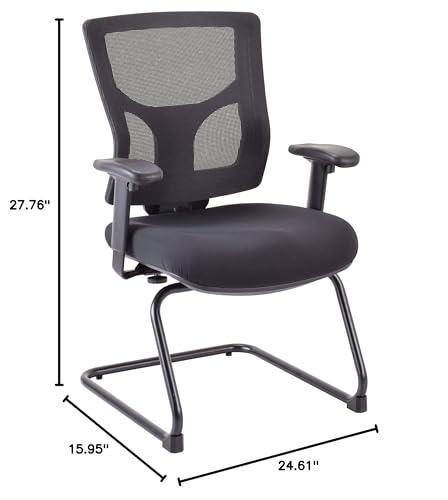 Conjure Guest Chair offers easy back-height adjustment and breathable mesh back for cradling comfort. Ergonomically designed mid-back is perfect for the natural curvature of a person's back. Fabric-upholstered seat is polyurethane-injection foam to ensure your guests feel welcomed. Included arms with polyurethane pads adjust in height and width to suit your needs. Sled base is powder-coated for durability.