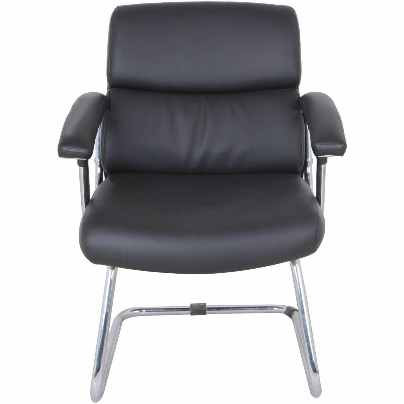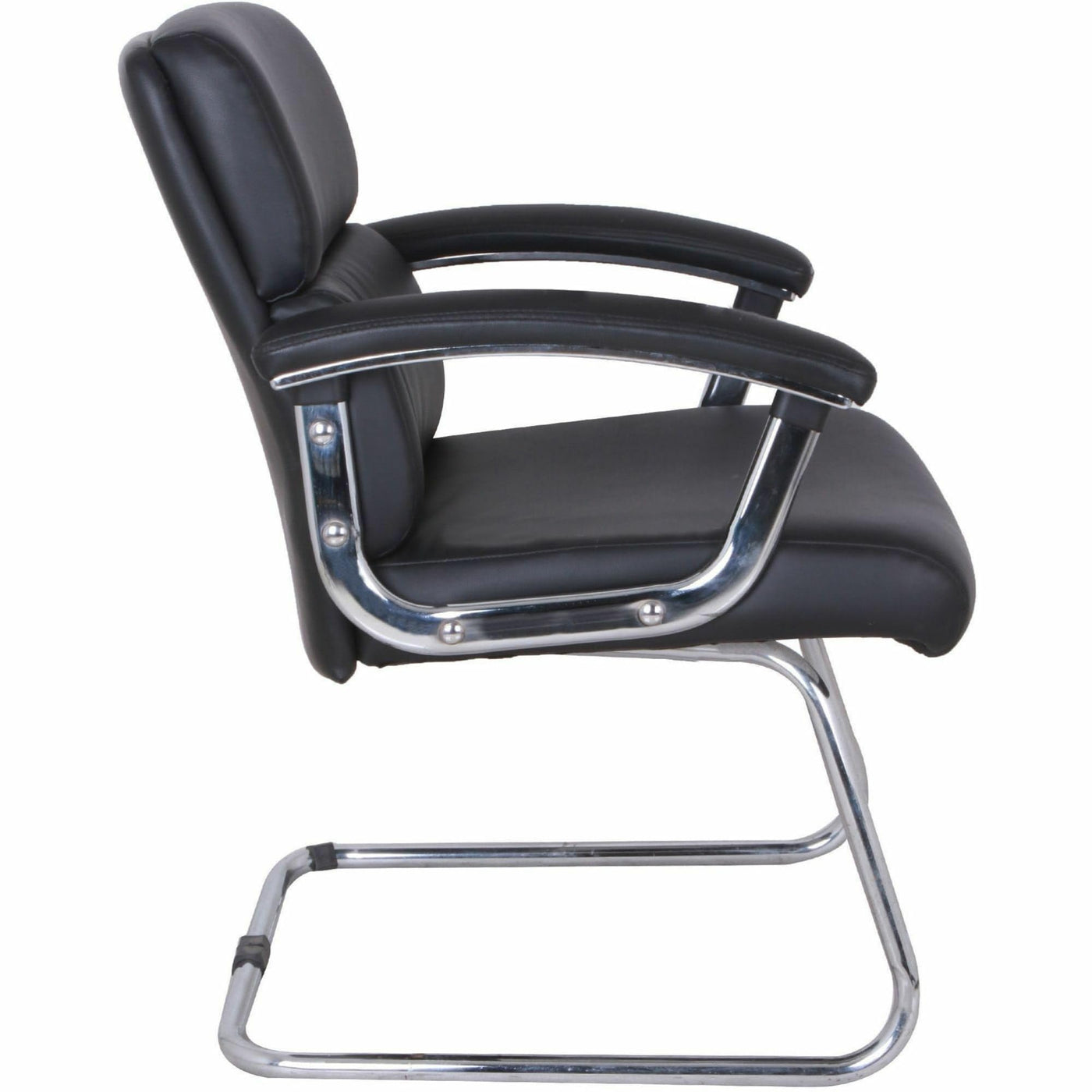 Guest chair features bonded leather upholstery over thickly cushioned seating for deluxe comfort and style. Fixed chrome steel arms also feature a soft upholstery pad. Sled base is made of steel with a shiny chrome finish. Weight capacity is 250 lb. Seat measures 19-1/8" wide x 17-3/4" deep x 18-1/8" high. Back dimensions are 20-1/14" wide x 22-1/4" high.