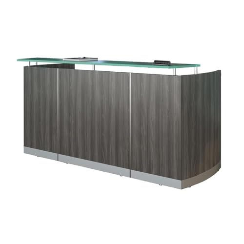 Convey Confidence And Make A Positive First Impression With Guests, Clients And Customers With The Sleek And Stylish Medina Reception Station. Set At 42 3/4" High, The Floating-Style, 3/4" Thick, Frosted, Tempered Glass Counter Allows Your Visitors To Comfortably Stand While Interacting With Your Receptionist Or Front-Of-Office Representative - Helping Create A Measure Of Privacy And Space Division From The Rest Of Room. The Desktop Of The Reception Station Features Grommet Holes At The Corners That Allow Monitor Cords And Lan Cables To Run From The Floor Up To The Surface In An Orderly, Out-Of-The-Way Manner – Promoting A Neater And More Organized Workspace. Sleek Silver Detailing Along The Base And Coordinating Silver Counter Supports Add A Touch Of Modern Edge To The Design. Crafted With A Durable, Scratch- And Stain-Resistant Laminate Finish To Help It Better Withstand Your Modern Office Environment, The Reception Station Comes In Your Choice Of Five Different, Sophisticated Colors Including Textured Sea Salt, Textured Brown Sugar, Mocha, Mahogany And Gray Steel. This Reception Station Coordinates With The Entire Medina Series Of Disking, Conference And Reception Furniture, So You Can Continue To Create A Complete, Cohesive And Professional Office Environment.