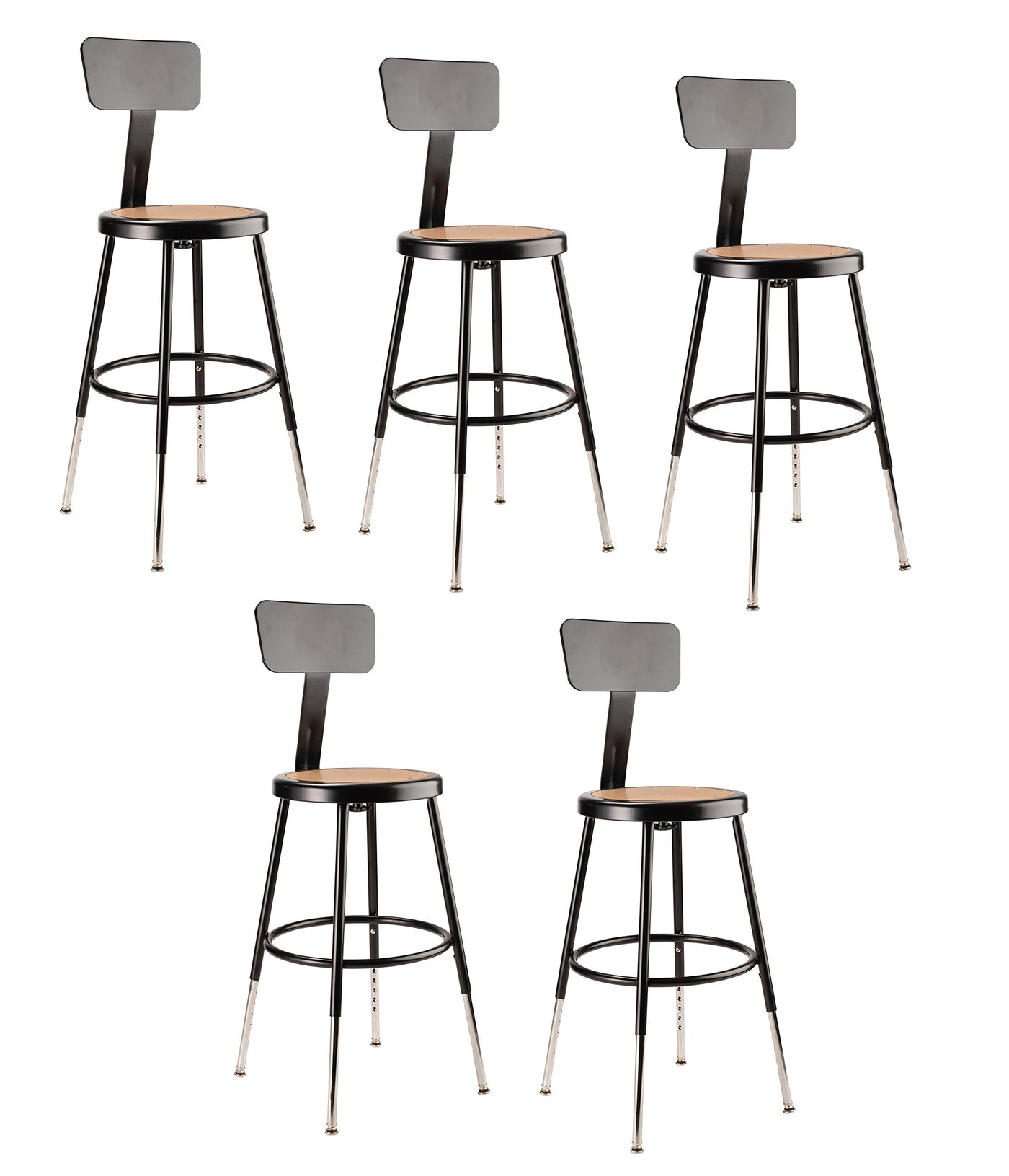National Public Seating 6218Hb-10-Cn 19" X 27" Height Adjustable Heavy Duty Steel Stool With Backrest (5 Pack), Black