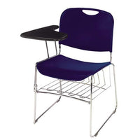 The Popular 8500 Series Ultra-Compact Stack Chair Stacks Up To 40 Units High For Quick Clean-Up And Efficient Storage In Cafeteria-Type Settings. Each Has An Injection-Molded, Textured, Polypropylene, Waterfall-Style Seat And Flexible Backrest Contoured For Maximum Ergonomic Comfort. The Plastic Won'T Fade Or Scratch And Is Easy To Keep Clean. The Durable 11Mm Solid Steel-Rod Chrome-Plated Frame Features Under-Seat Ribbing For Reinforced Support And Prevents Cracking. Chair Is Lightweight, With A Built-In Backrest Handle Allowing For Easy Portability. Sled-Style Base Moves Easily Over Carpeted Surfaces While Clamping Protective Glides Keep Floors Unscathed. Available With Or Without A Steel Under-Seat Book Rack And/Or A Spacious, Removable, Black-Laminate, Flip-Up Tablet Arm For Either Right Or Left-Handed Users.