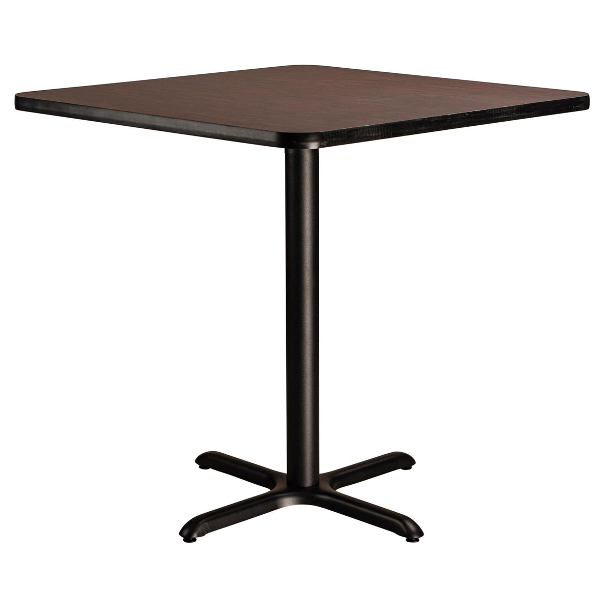 National Public Seating NPS 36" Square Cafe Table with X Base, 36" Height, Particleboard Core/T-Mold, Mahogany Top, Black Frame