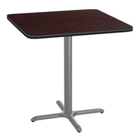 National Public Seating NPS 36" Square Cafe Table with X Base, 36" Height, Particleboard Core/T-Mold, Mahogany Top, Grey Frame