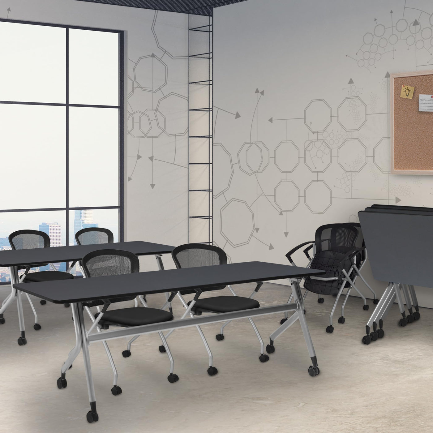 Unique Nesting 48-Inch Flip Top Training Table- Unlock The Quick-Release Lever And Flip Down The Tabletop To Nest Together For Convenient Storage | Tabletop Is Constructed Of A 1-Inch Thick Thermal Fused Melamine Laminate Finished With A Black T-Mold Edge Banding | No Sharp Corners Making It Safe For Educational Environments | Platinum Tubular Alumnium Base Has 2.5 Inch Locking Casters. We Made It’S Casters .5 Inch Bigger Than Normal Casters For Added Durability & Support. It Also Makes The Table Easily Mobile And Easy To Reconfigure. | Aluminium Base Is Extremely Lightweight, Very Durable & Will Not Rust Or Detoriate. Meaning It'S Easy To Move, Store & Guranteed To Last. Backed By A 10 Year Limited Manufacturers Warranty