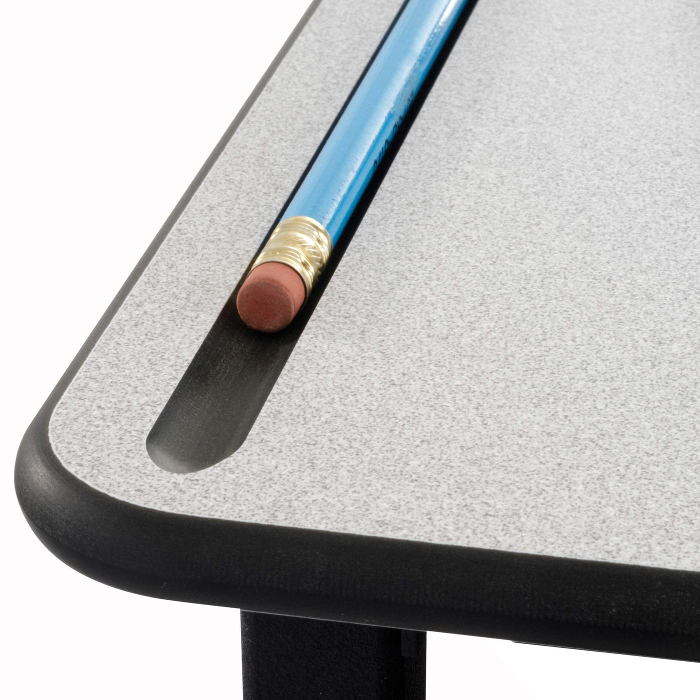 Safco AlphaBetter Adjustable-Height Desk gives students the chance to get up out of their chairs and become more active learners—potentially helping increase their attention and focus during class. Standing desk adjusts from 42"H for standing down to 26"H for sitting. While seated or standing, the patented Swinging Pendulum Footrest Bar provides a non-disruptive way to help burn off extra energy without distracting others. Designed with 16-gauge, commercial-grade tubular steel, its sturdy base withstands the toughest schoolroom conditions and keeps going strong. Covered with a black powder coat finish to help resist chipping and scratching for years of dependable use. Adjustable nylon-base glides ensure the stand-up desk will sit evenly on any floor. Premium desktop measures 28"W x 20"D which easily accommodates laptops, textbooks and project supplies. Constructed with hard, dense composite resin with a slim modern profile, desktop resists scratching, denting and chemicals. Grooves on three sides prevent pens and pencils from rolling off the desk. A lower bottom shelf comfortably holds small books and supplies within easy reach. The Safco AlphaBetter Desk received CPSIA Certification and earned the Global Educator Institute (GEI) Seal of Endorsement, placing it among the best teaching products available today. The Safco AlphaBetter Adjustable-Height Desk Advantage As seen in NBC News, The Today Show and other news outlets, the AlphaBetter Adjustable-Height Desk and Footrest Bar ('fidget bar') contribute to an Active Classroom environment, allowing students to stand and move while they work and learn. This motion helps to burn excess energy and calories while potentially helping to improve focus. It also allows students to naturally fidget, providing movement they may no longer get during physical education classes, recess or at home. Even these small movements can add up and be beneficial to a student's activity level, and may help them live a healthier lifestyle.