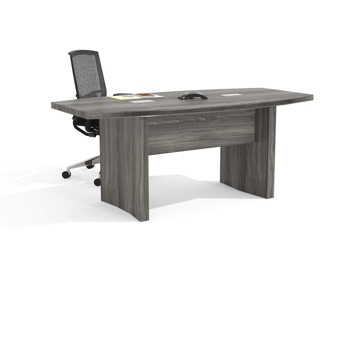 Elegant enough for the executive suite but sufficiently flexible for team environments, The Aberdeen conference table conveys a professional confidence while offering an ideal place for your Group to comfortably gather to brainstorm ideas and coordinate strategies. Sophisticated With the look of wood but ready for the challenges of everyday use in the office, The Aberdeen conference table's roomy 6-foot, boat-shaped top features a durable, scratch- and stain-resistant laminate finish to help reduce the chance that a sliding speakerphone or splash of coffee leaves a lasting impression on the surface. An eye-catching fluted trim wraps all the way around the edge of the bold 1-5/8" Thick, hollow-core tabletop, providing a touch of stylish definition and conveying your appreciation for a keen attention to detail. Easily run cords and cables from computers, projectors and phones through two integrated grommet holes on the tabletop and channels inside the legs of the table to help reduce clutter and promote a cleaner, more organized work area. The Aberdeen conference table coordinates with the entire Aberdeen Series of disking, conference and reception furniture, so you can create a complete, cohesive and professional workspace. Consider fitting A Safco power module for conference tables (Sold separately) into one of the grommet holes of your Aberdeen conference table, simplifying access to AC power and LAN data ports for your collaborating co-workers and colleagues.